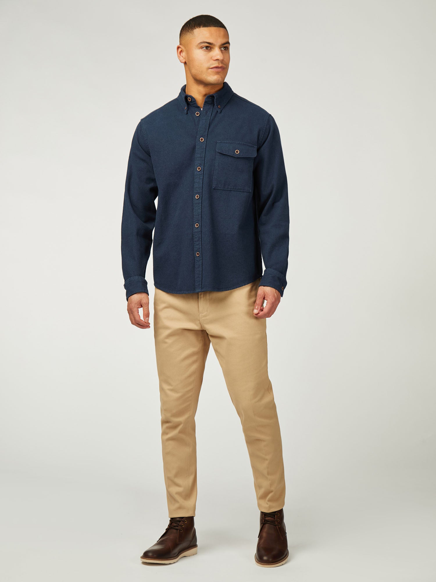 This long sleeve brushed overshirt features a curved hem and a three finger button down collar. Made from 100% cotton, this overshirt is completed with a ‘Ben Sherman’ branded woven label at the side seam.
