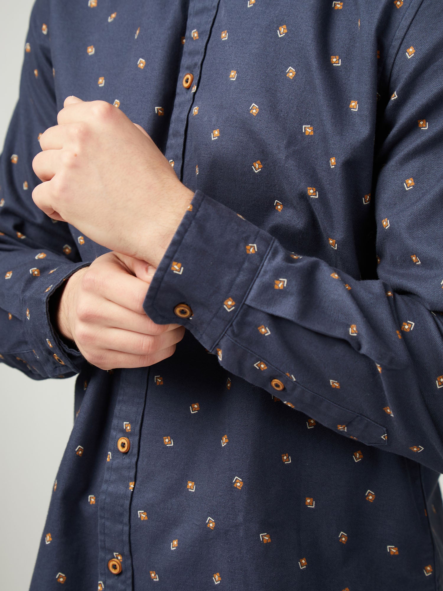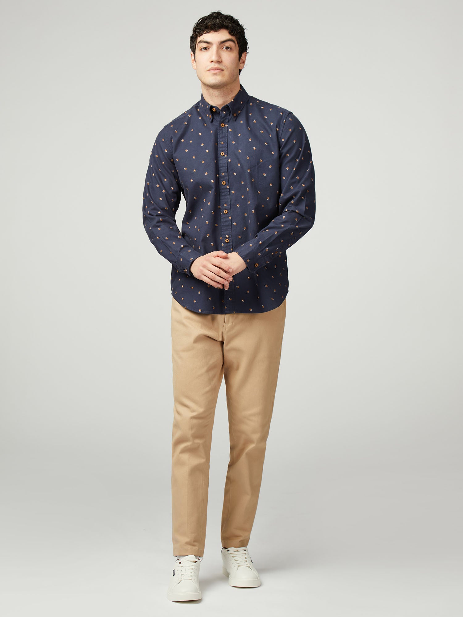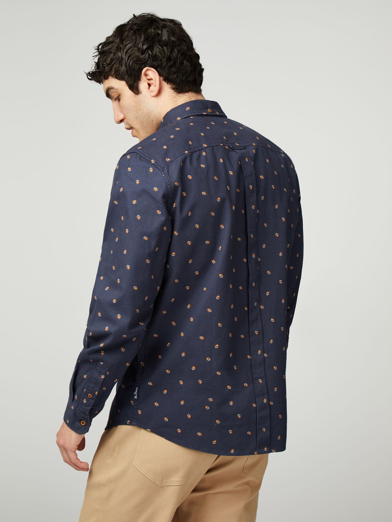 A classic fit shirt deigned with a scattered geo print. This brushed twill shirt features a curved hem, two finger button down collar and a ‘Ben Sherman’ branded woven label at the side seam. Made from 100% cotton.