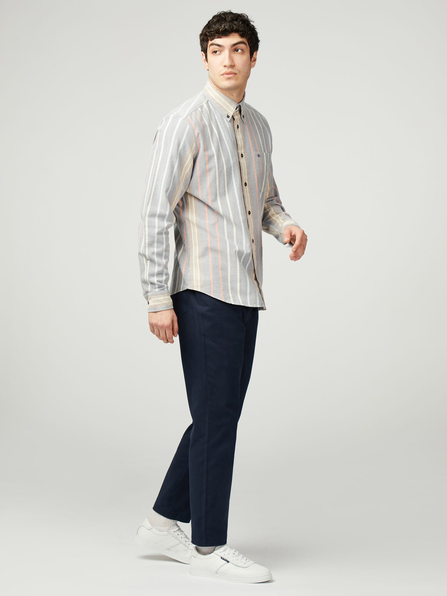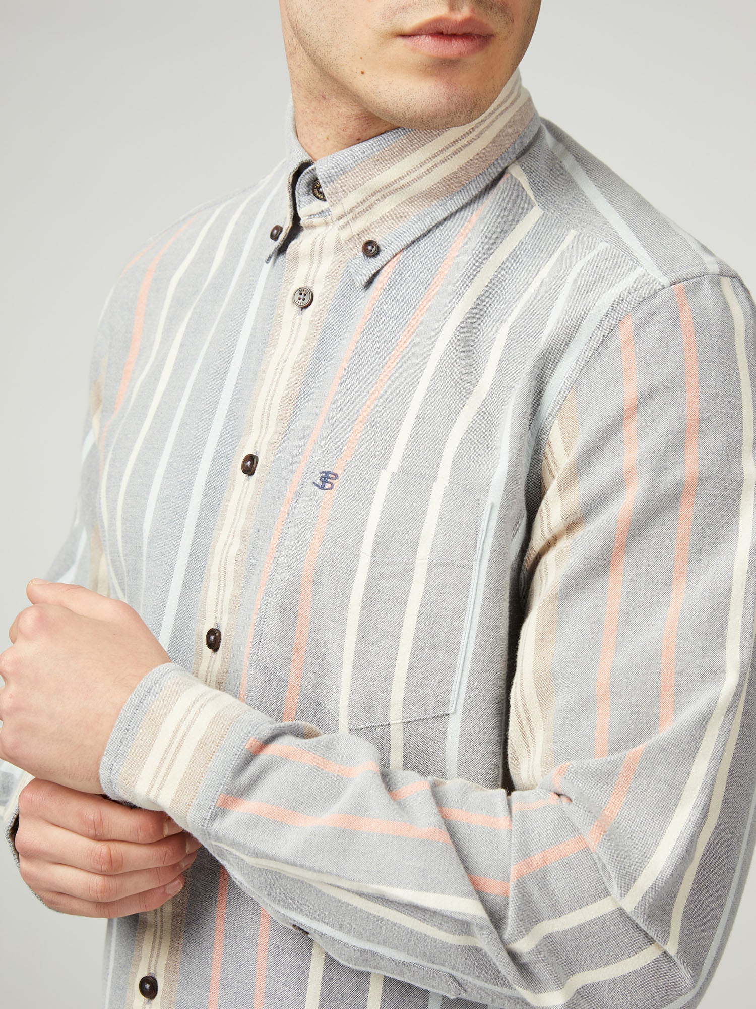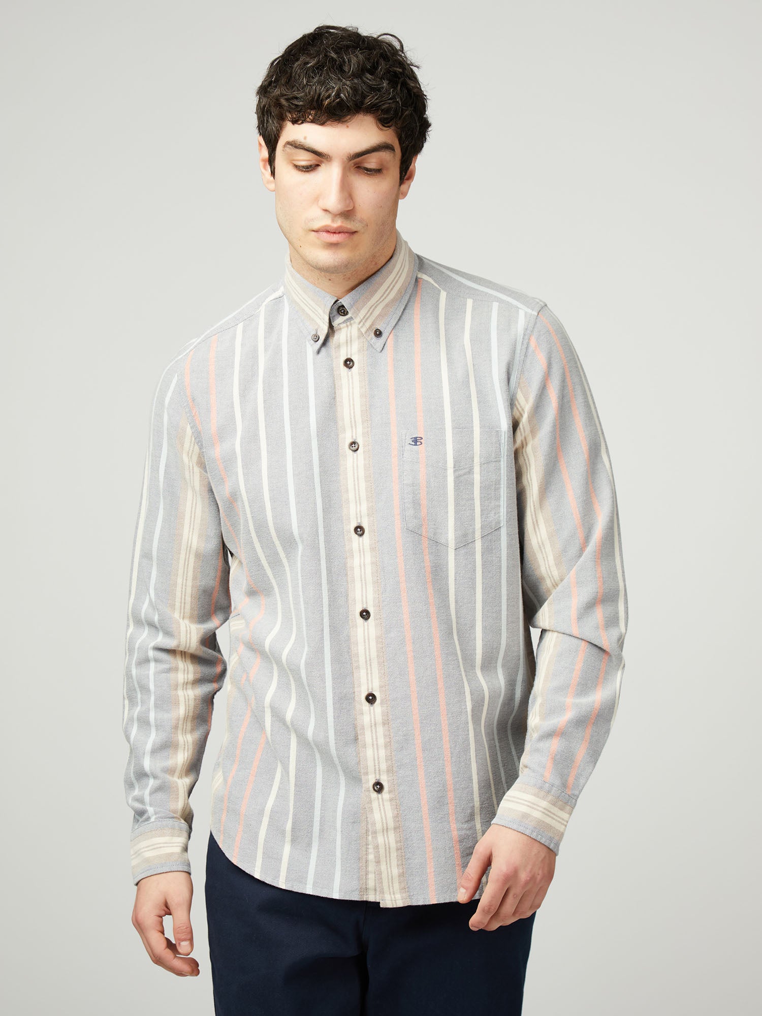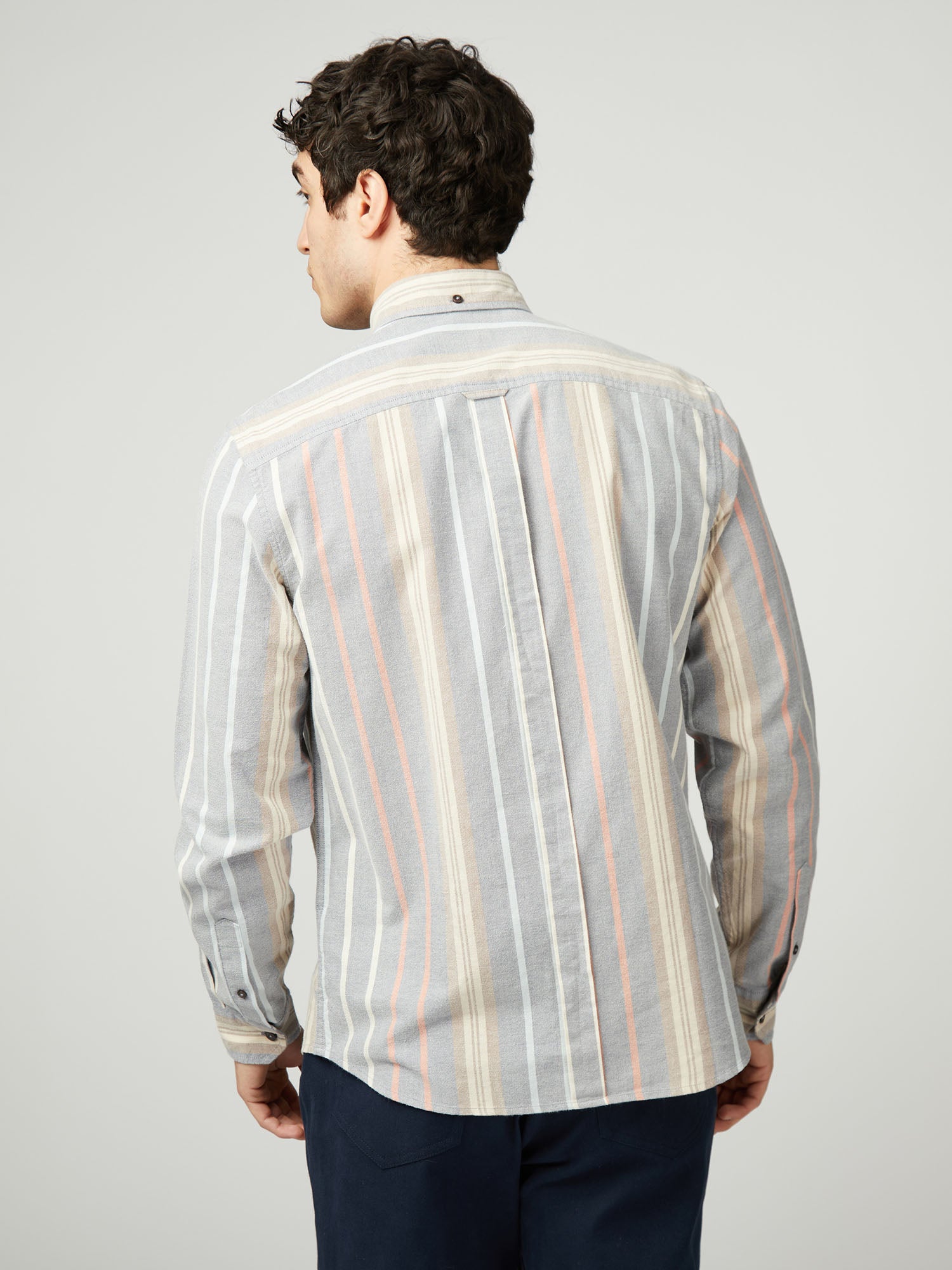 Made from 100% cotton, this long sleeve variegated stripe shirt includes a three finger button down collar and a ‘B’ embroidery on the chest pocket. A classic fit featuring a curved hem.