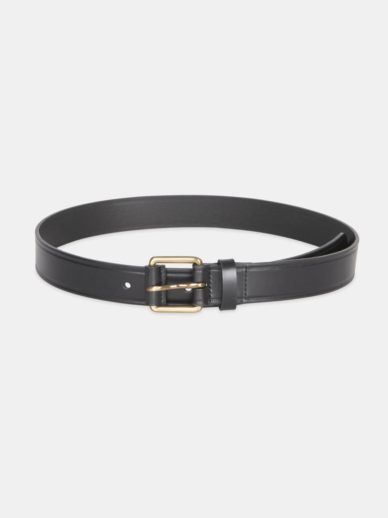 This casual belt with leather covered roller is a great belt to wear with chinos or jeans.