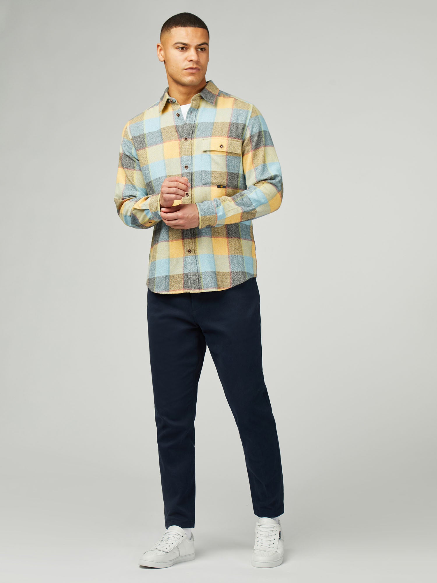 Made from 100% cotton, this long sleeve diffused pop check shirt includes a causal point collar and ‘B’ branded woven label on the chest pocket. A classic fit featuring a curved hem.