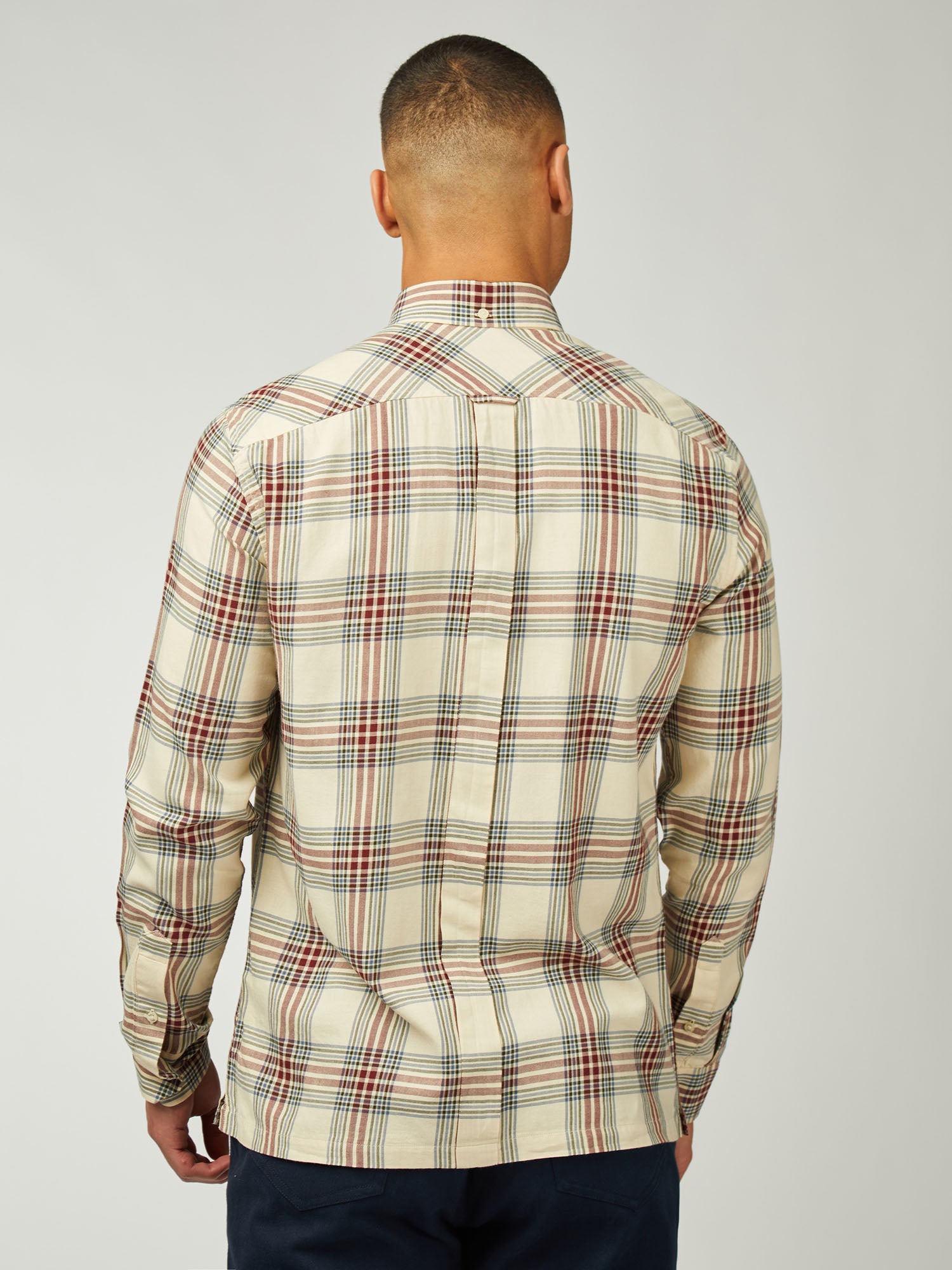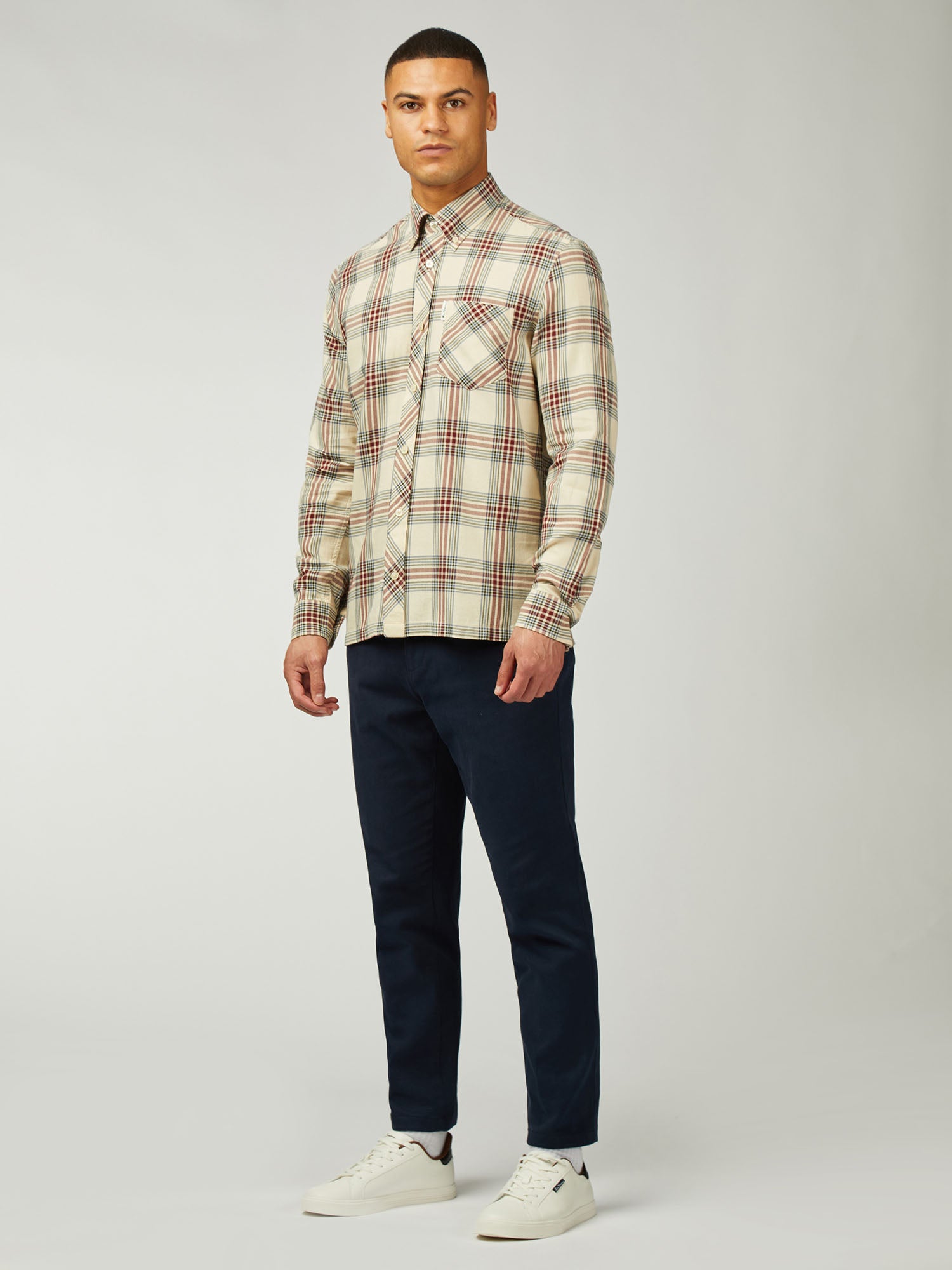 This long sleeve grid check shirt features a straight hem and a three finger button down collar. Made from 100% cotton, this regular fit shirt is completed with a ‘Ben Sherman’ branded woven label in the chest pocket.