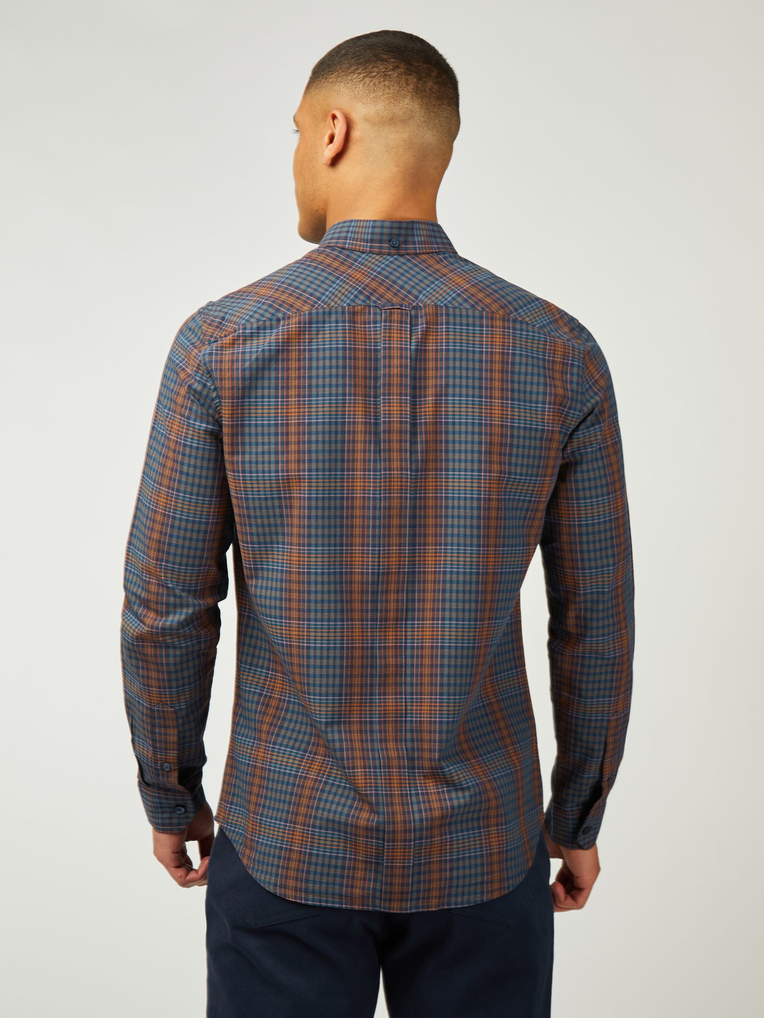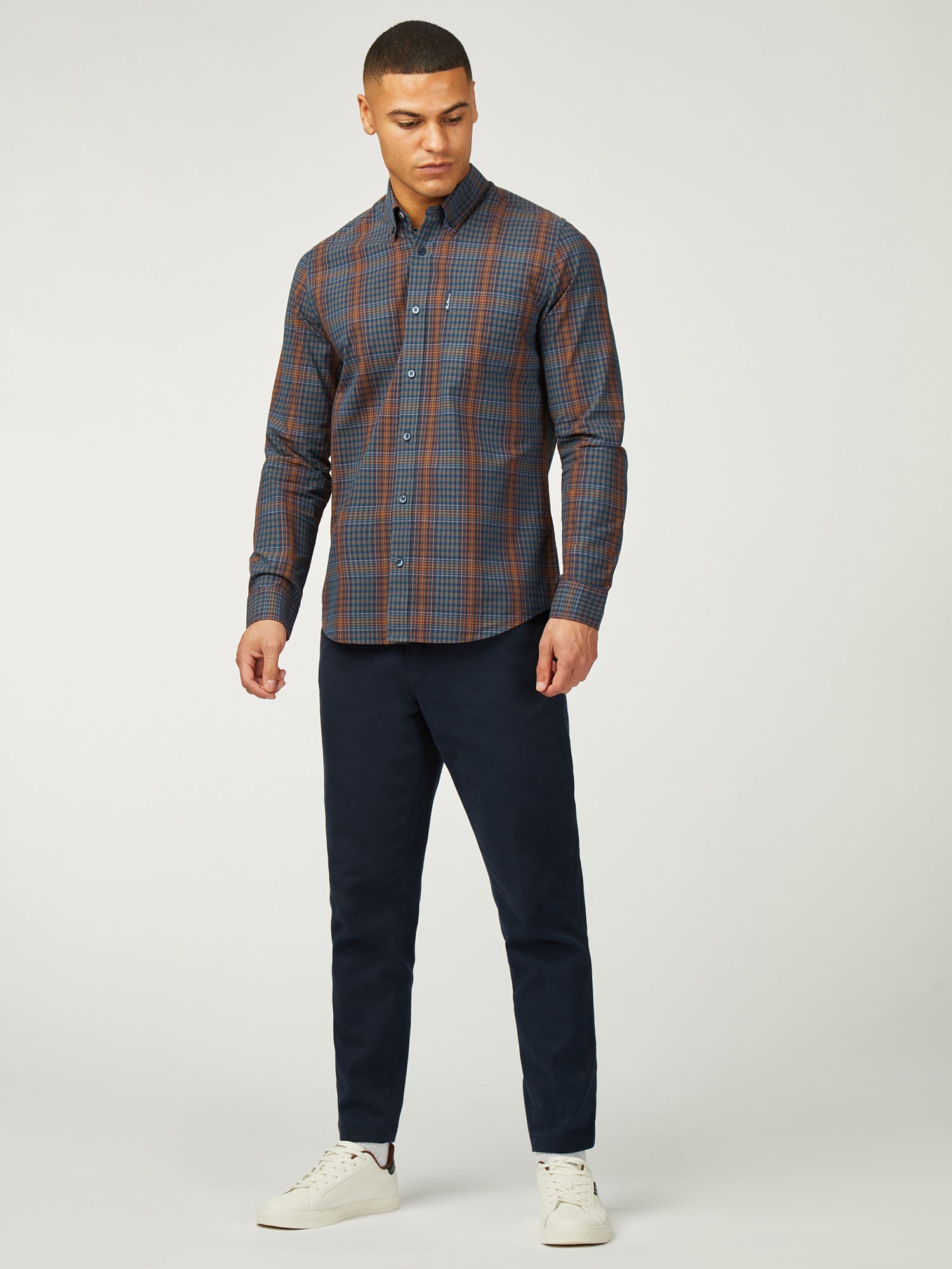 This long sleeve multicolour check shirt features a curved hem and a two finger button down collar. Made from 100% organic cotton, this regular fit shirt is completed with a ‘Ben Sherman’ branded woven label on the chest pocket.