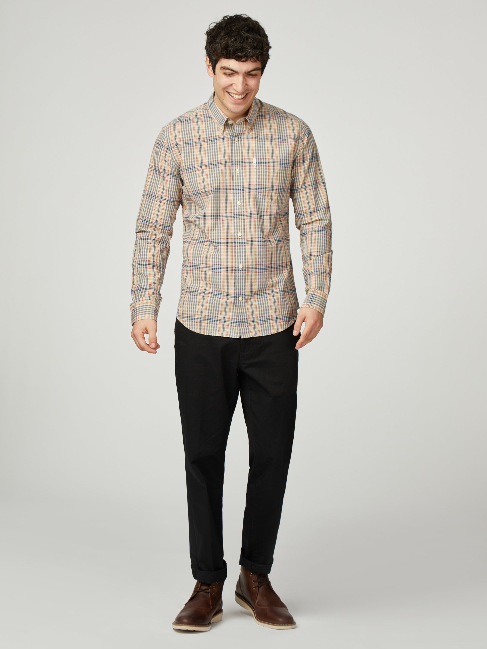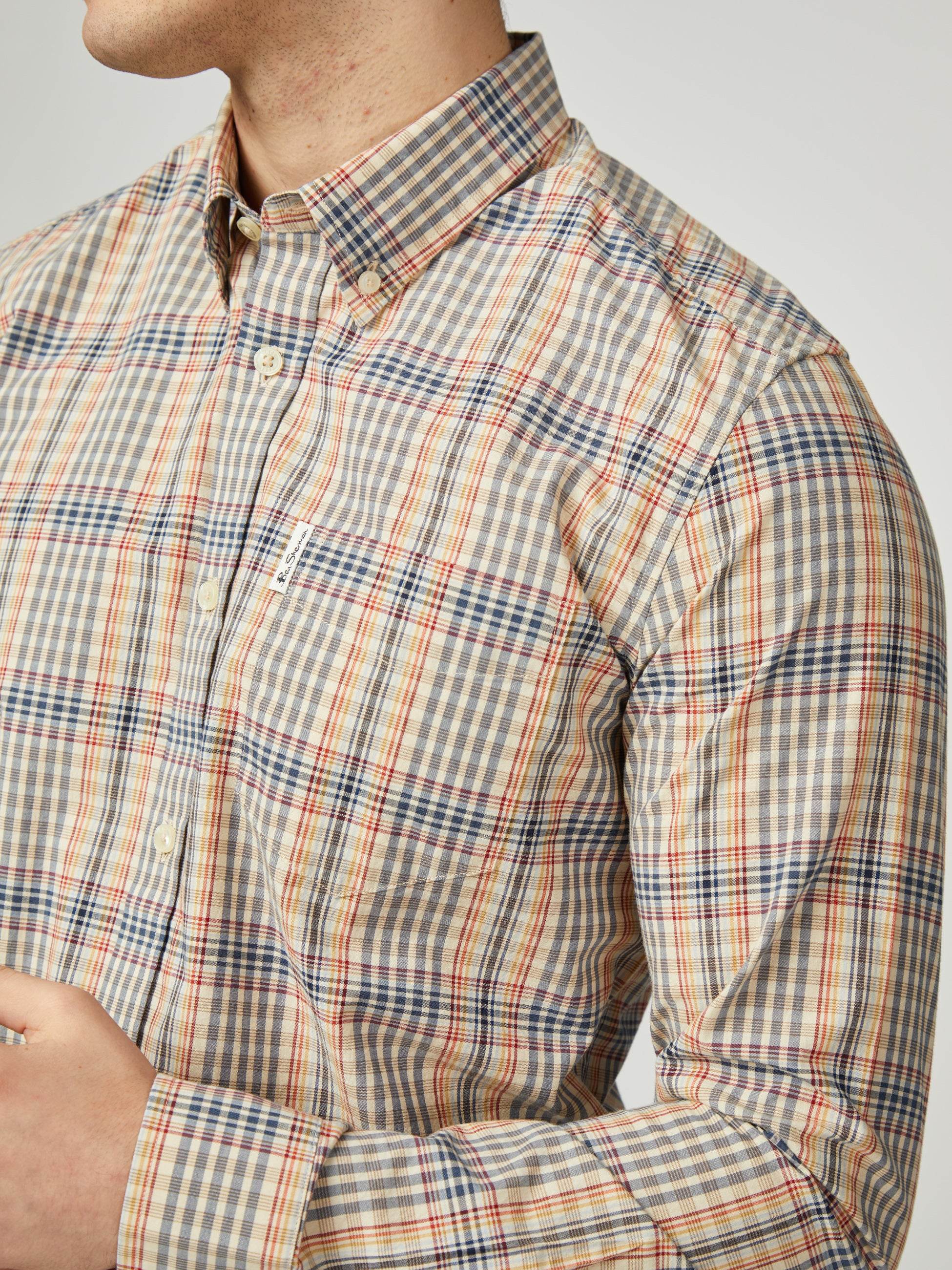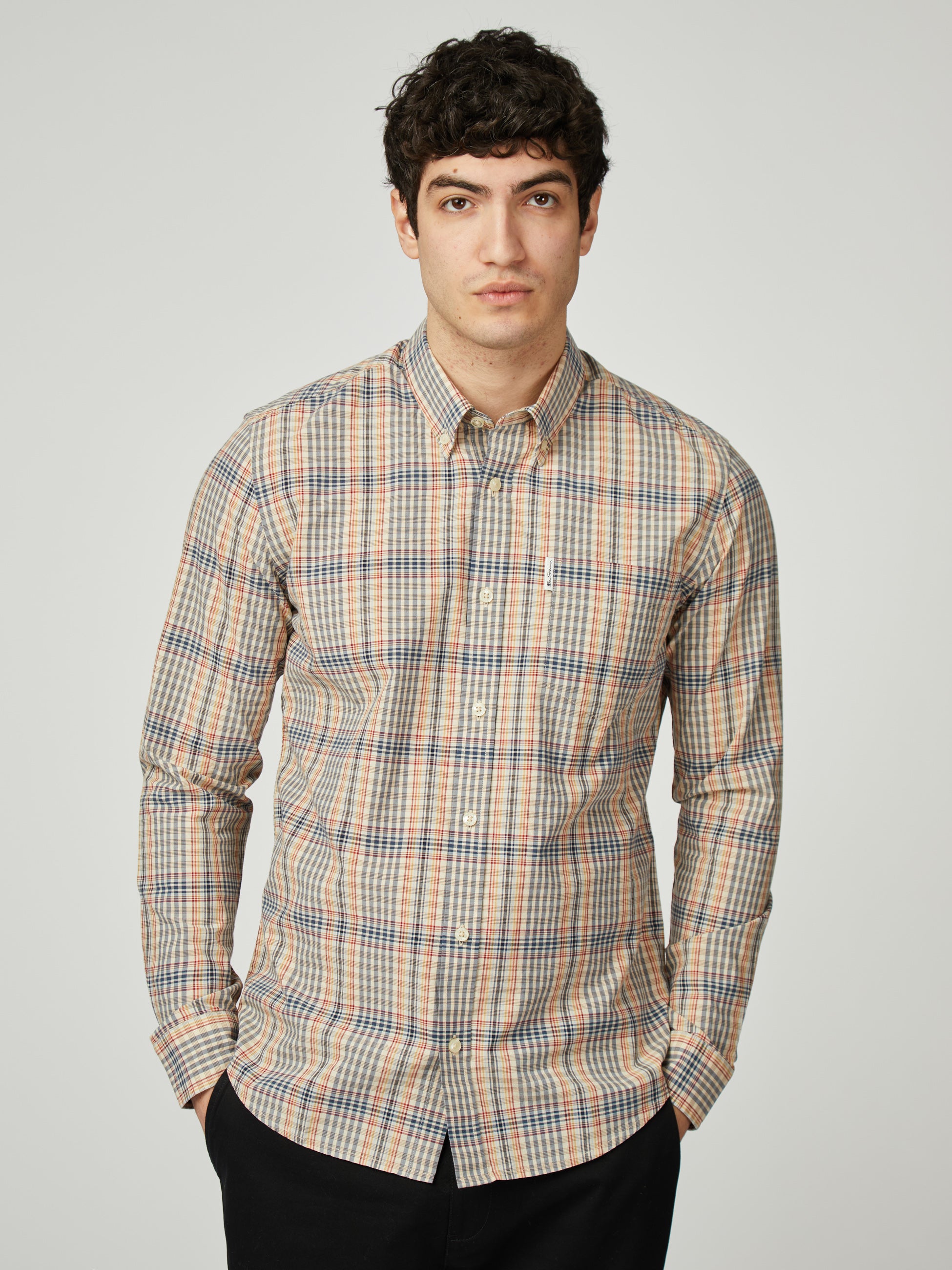 This long sleeve multicolour check shirt features a curved hem and a two finger button down collar. Made from 100% organic cotton, this regular fit shirt is completed with a ‘Ben Sherman’ branded woven label on the chest pocket.