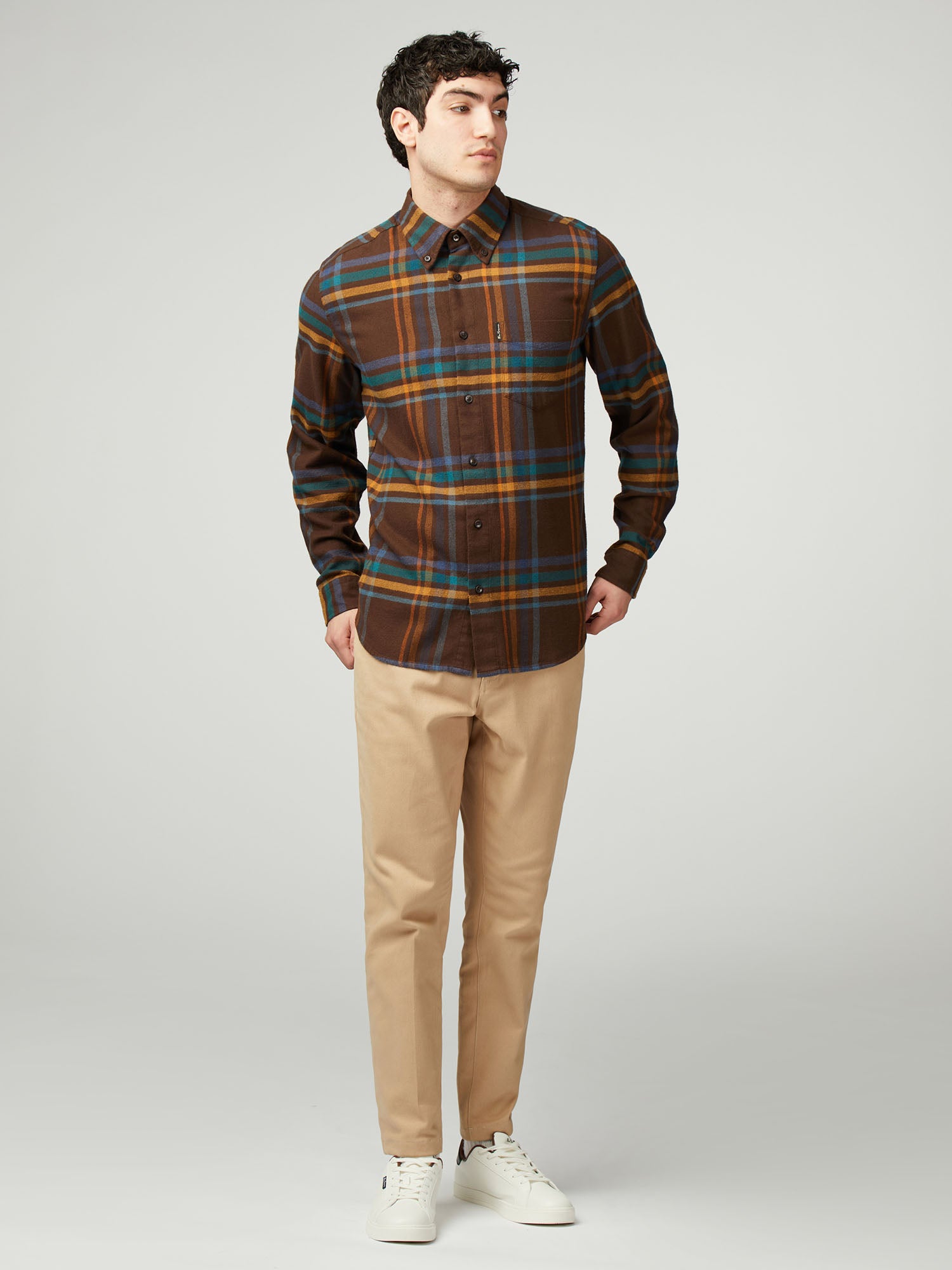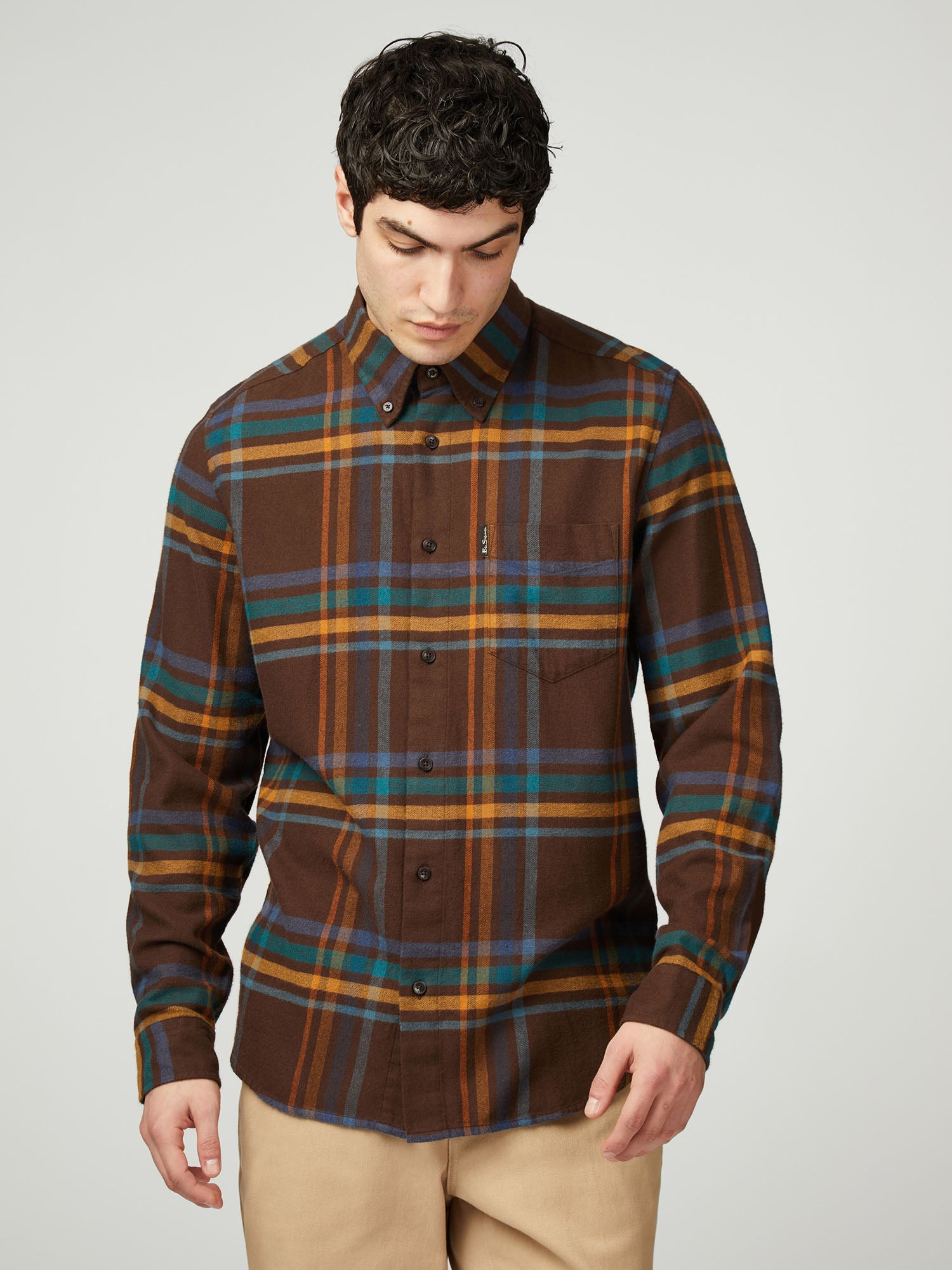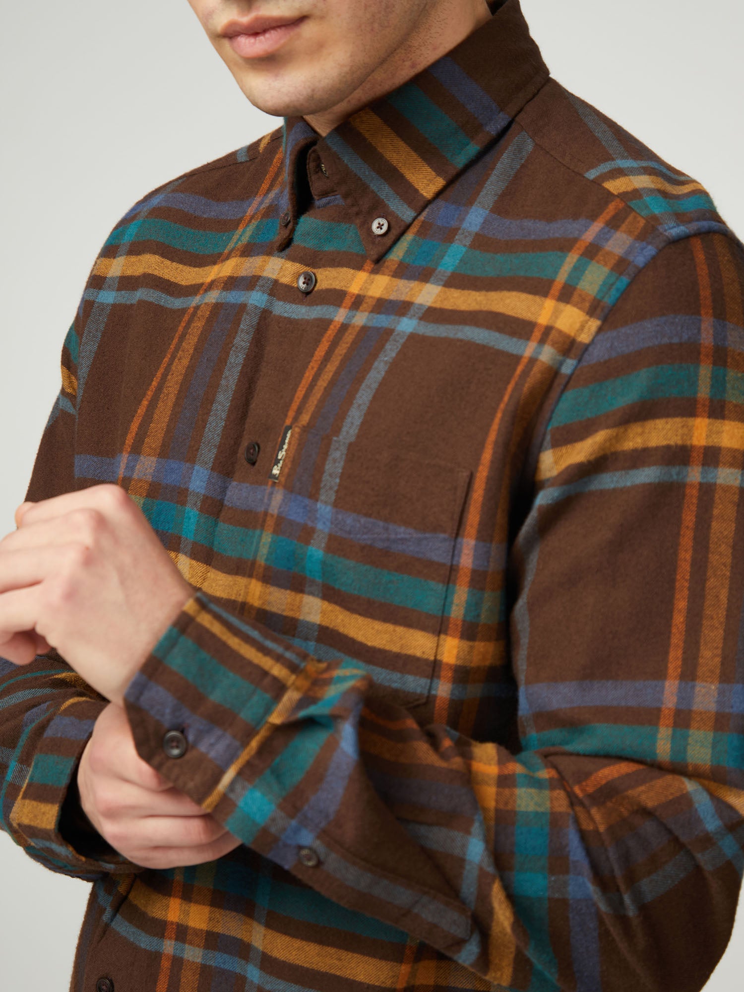 This long sleeve oversized brushed check shirt features a curved hem and a three finger button down collar. Made from a cotton viscose blend, this classic fit shirt is completed with a ‘Ben Sherman’ branded woven label on the chest pocket.