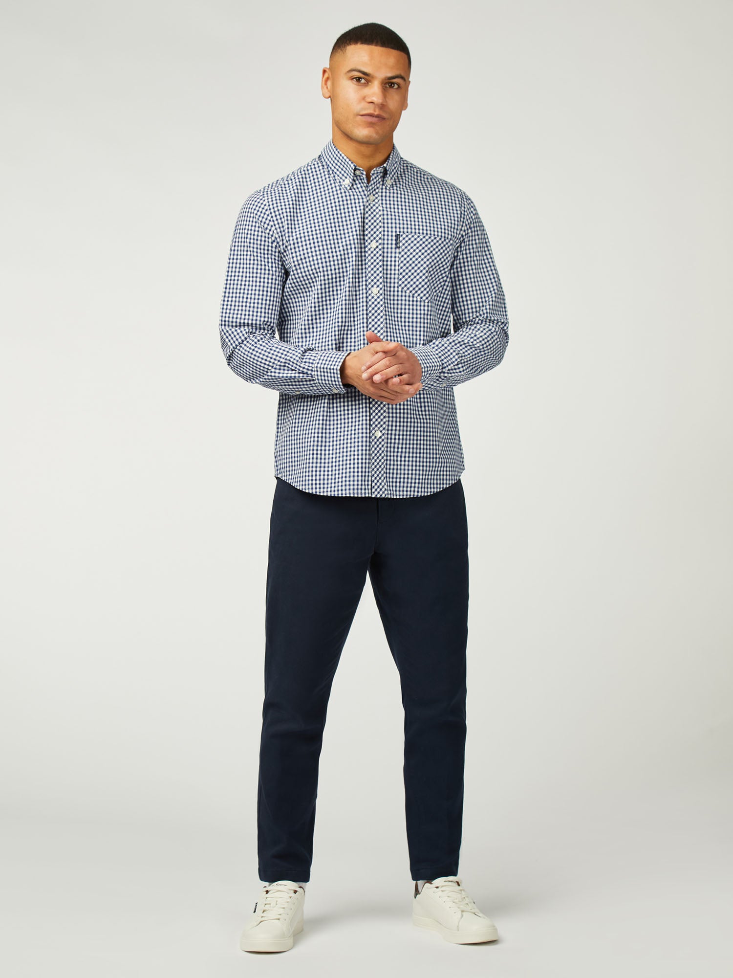A modern classic with a sharp twist — the Signature Gingham Long Sleeve Shirt brings vibrant heritage checks into your everyday style. Crafted from 100% organic cotton, it offers breathable comfort with a refined regular fit. The two-finger button-down collar, chest pocket with branded label, and back box pleat combine for timeless detailing. Whether layered under a blazer or worn solo, its crisp gingham pattern commands presence with understated confidence.