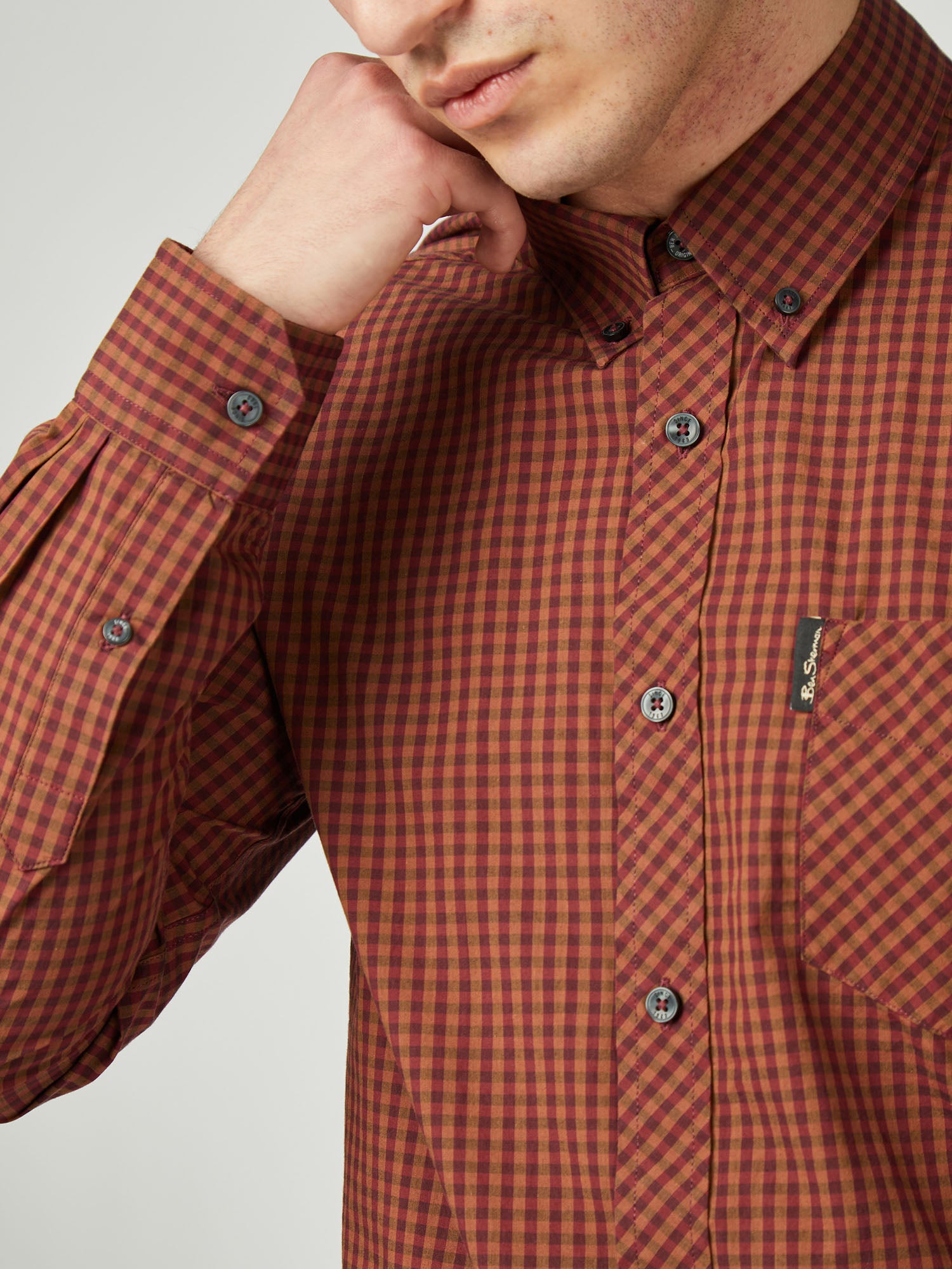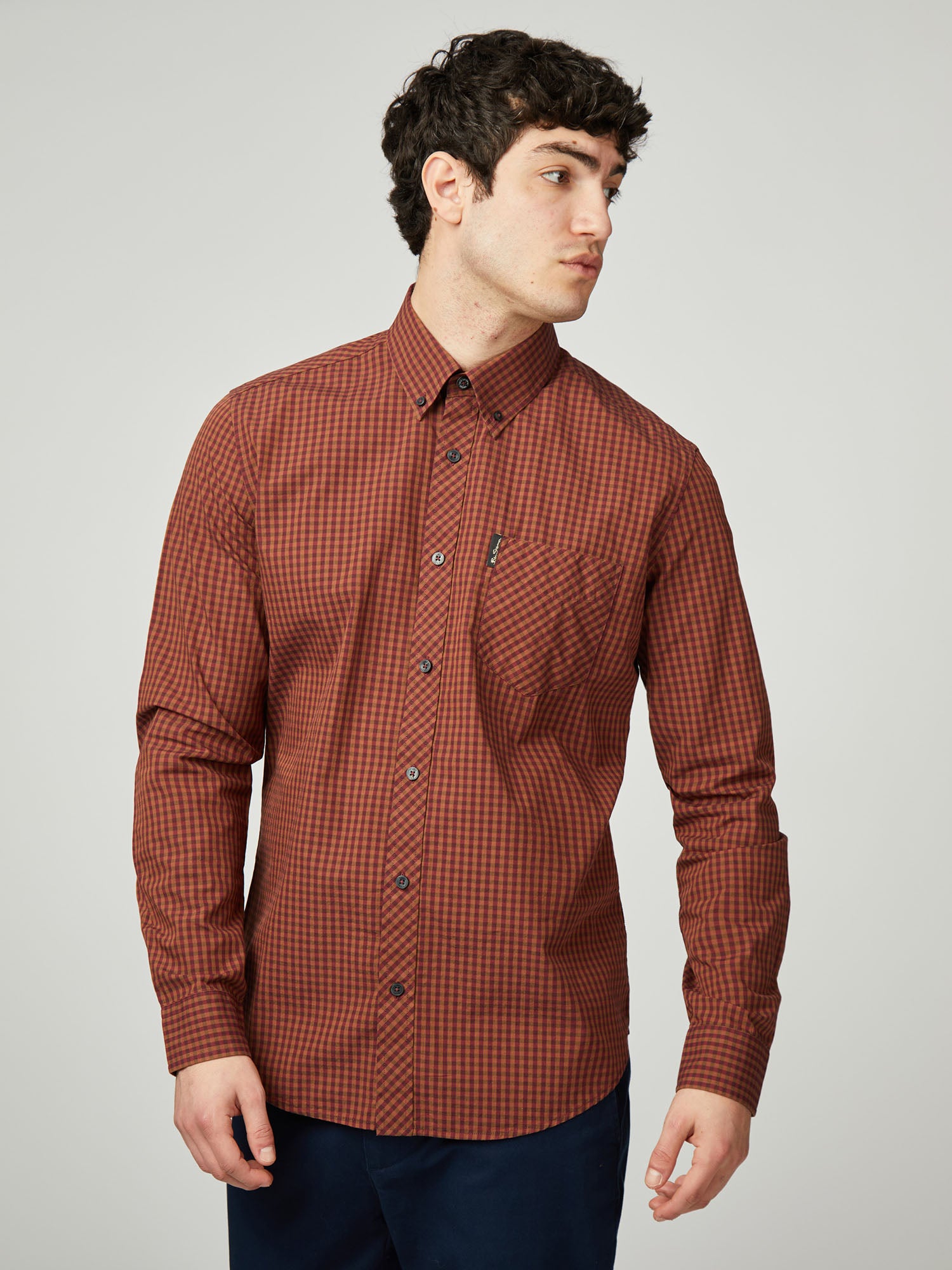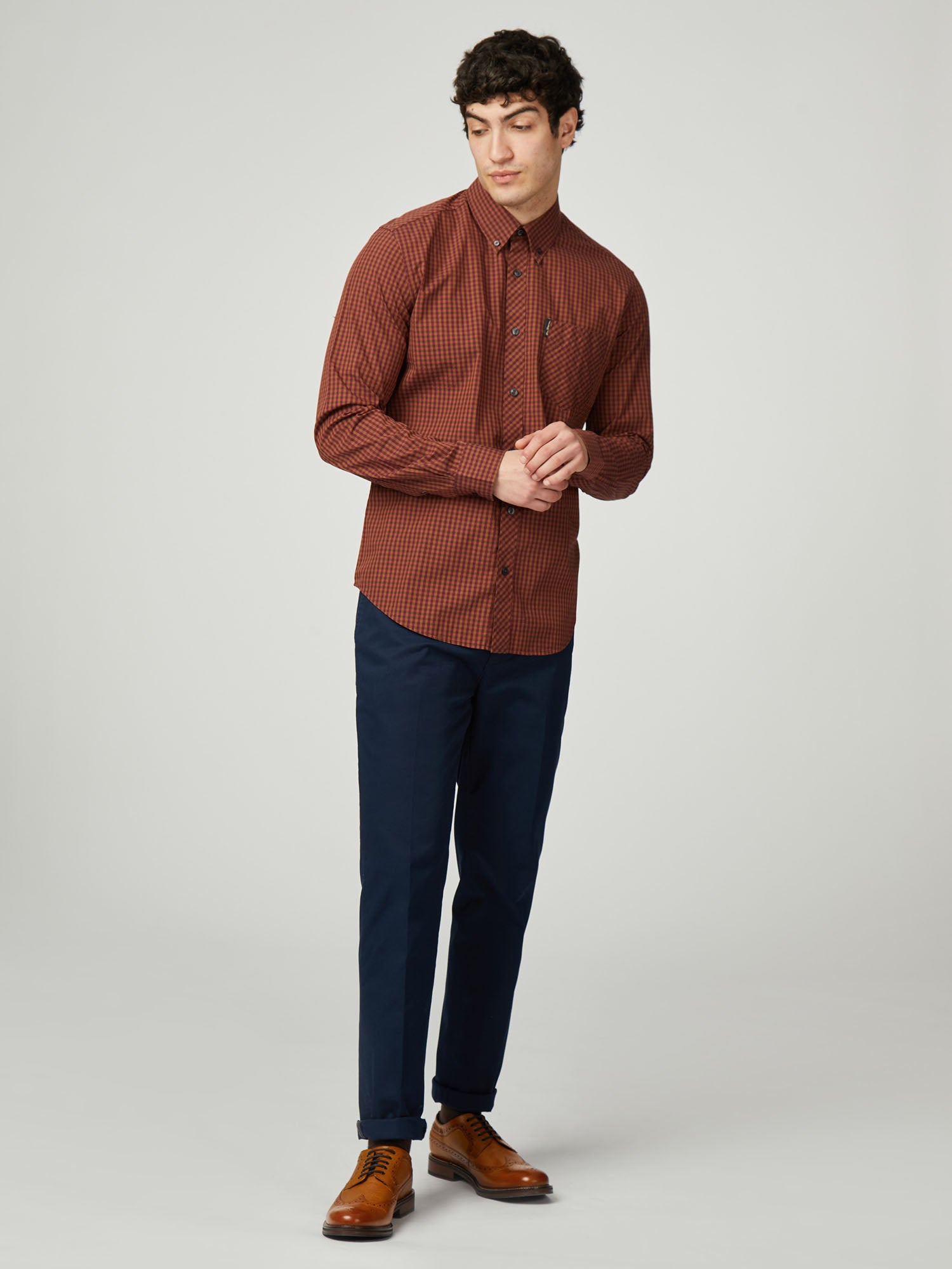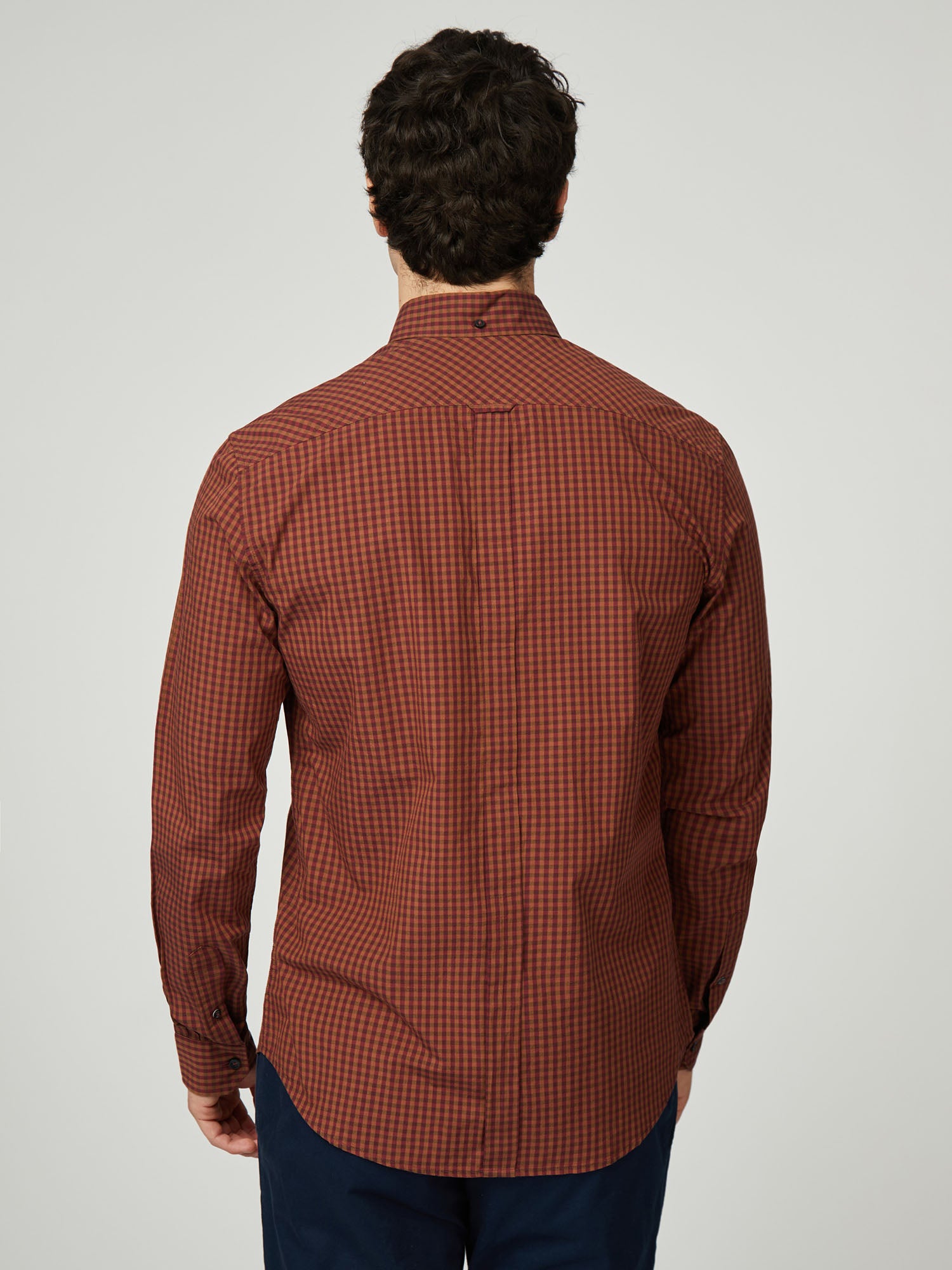 A modern classic with a sharp twist — the Signature Gingham Long Sleeve Shirt brings vibrant heritage checks into your everyday style. Crafted from 100% organic cotton, it offers breathable comfort with a refined regular fit. The two-finger button-down collar, chest pocket with branded label, and back box pleat combine for timeless detailing. Whether layered under a blazer or worn solo, its crisp gingham pattern commands presence with understated confidence.