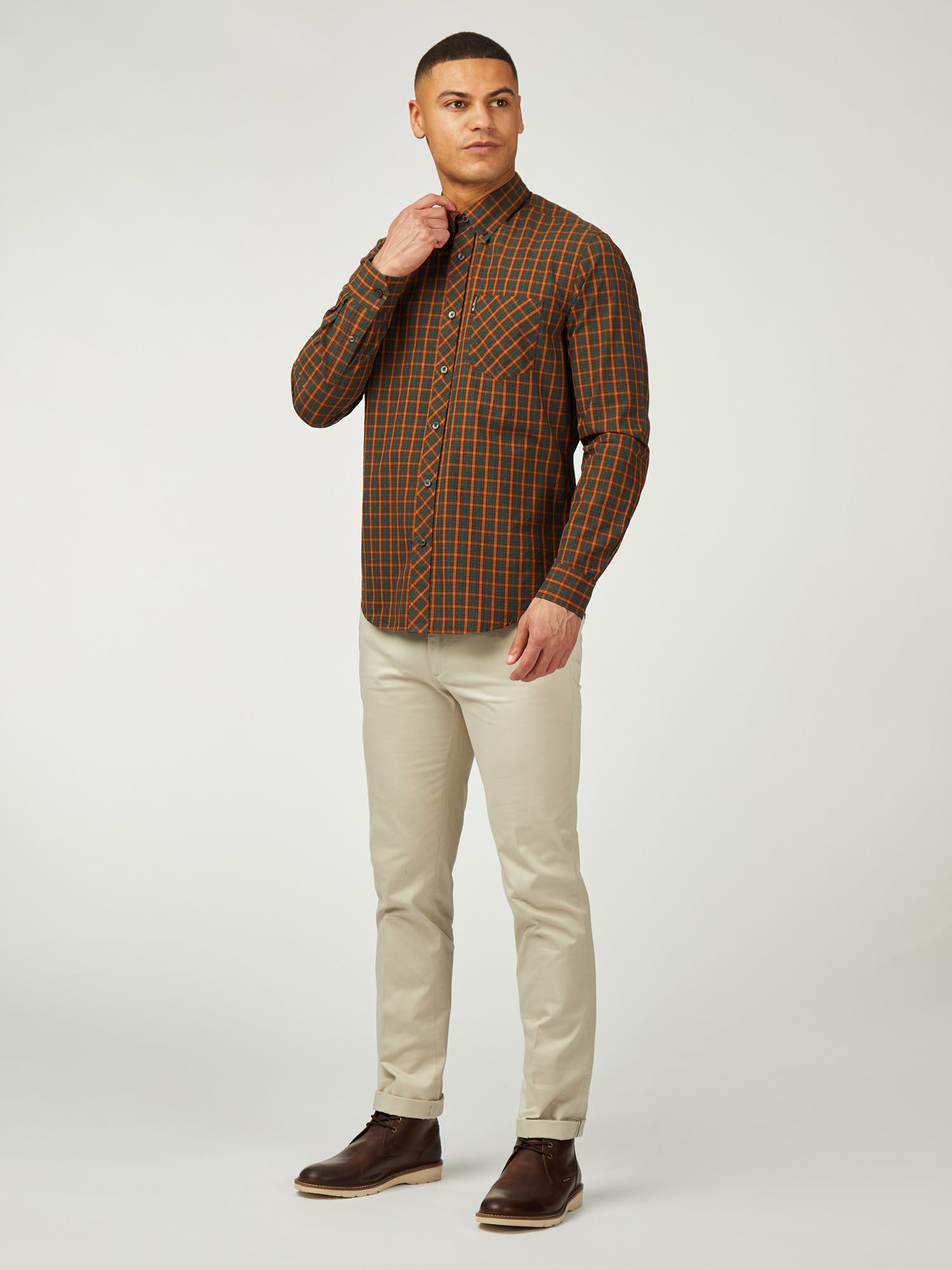 The house check is a classic Ben Sherman style. This long sleeve shirt is made from 100% organic cotton and features a two finger button down collar with a ‘Ben Sherman’ branded woven label on the chest pocket.