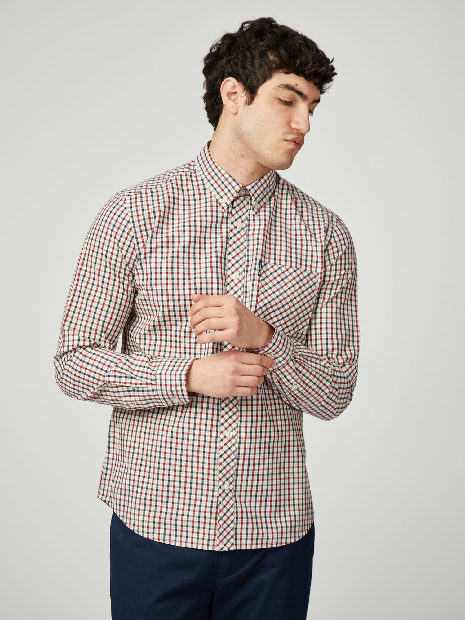 The house check is a classic Ben Sherman style. This long sleeve shirt is made from 100% organic cotton and features a two finger button down collar with a ‘Ben Sherman’ branded woven label on the chest pocket.