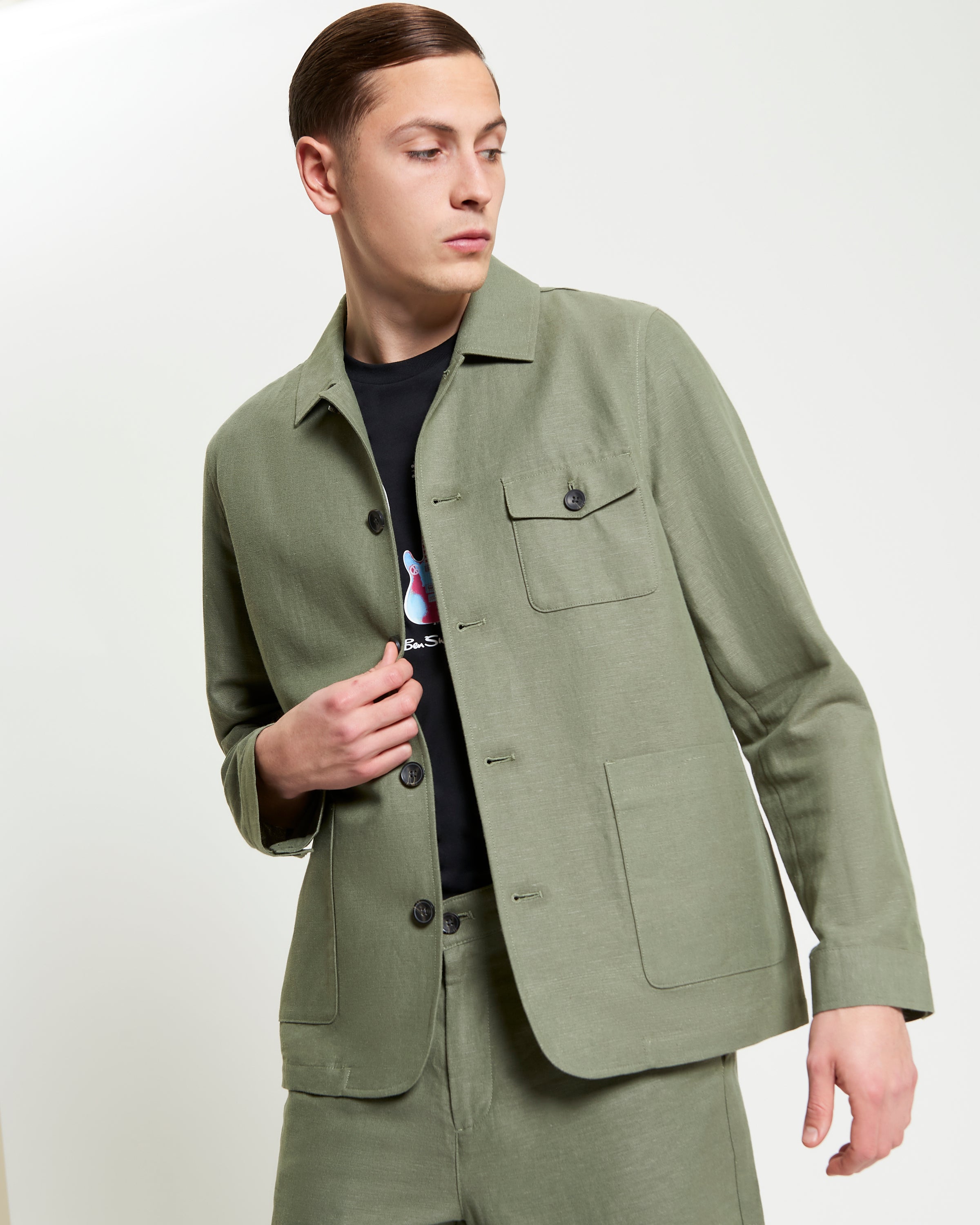 Effortless style meets everyday utility in the Linen Cotton Chore Jacket. Unlined and breathable, this piece blends linen and cotton into a lightweight frame with internal bound seams for structure. Featuring a classic point collar, button-through placket, and three external patch pockets, it's ideal for layering over tees or shirts. Finished with the subtle Ben Sherman flag label, it channels workwear-inspired cool — perfect for city streets or laid-back afternoons.