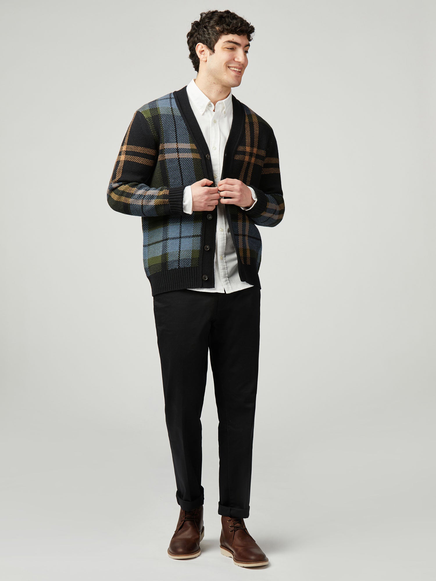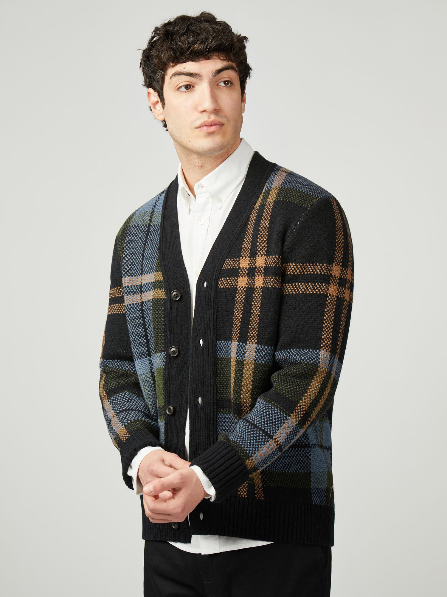 This knitted tartan cardigan features a ‘Ben Sherman’ branded woven label at the side seam. A regular fit, made form a wool blend.