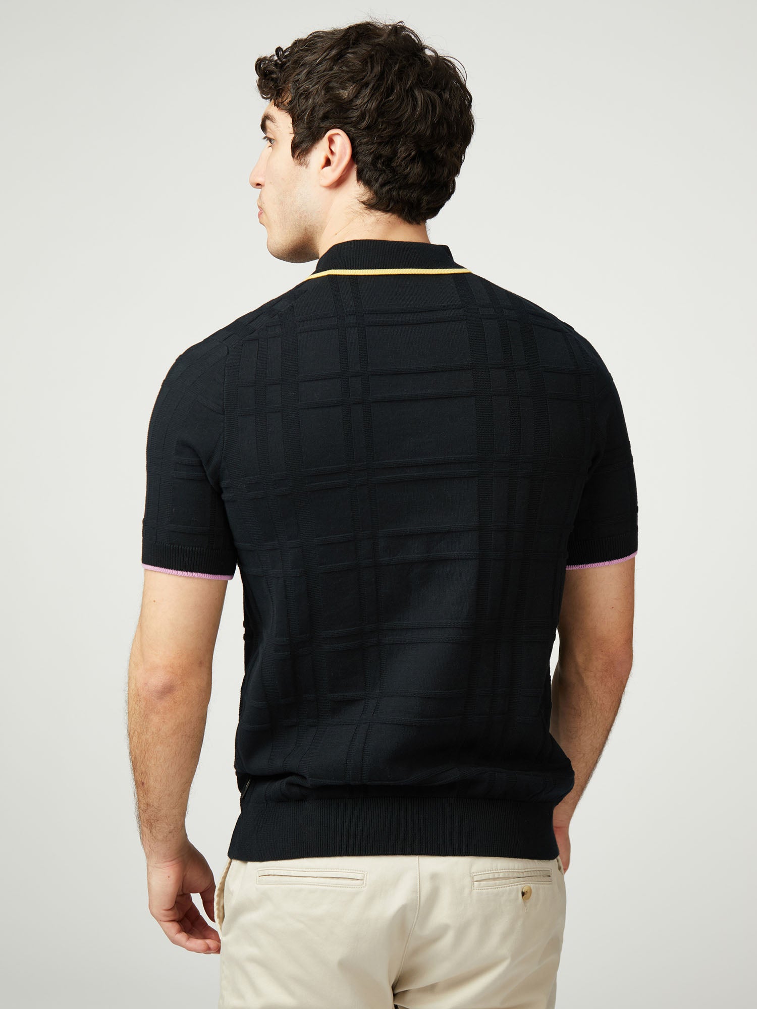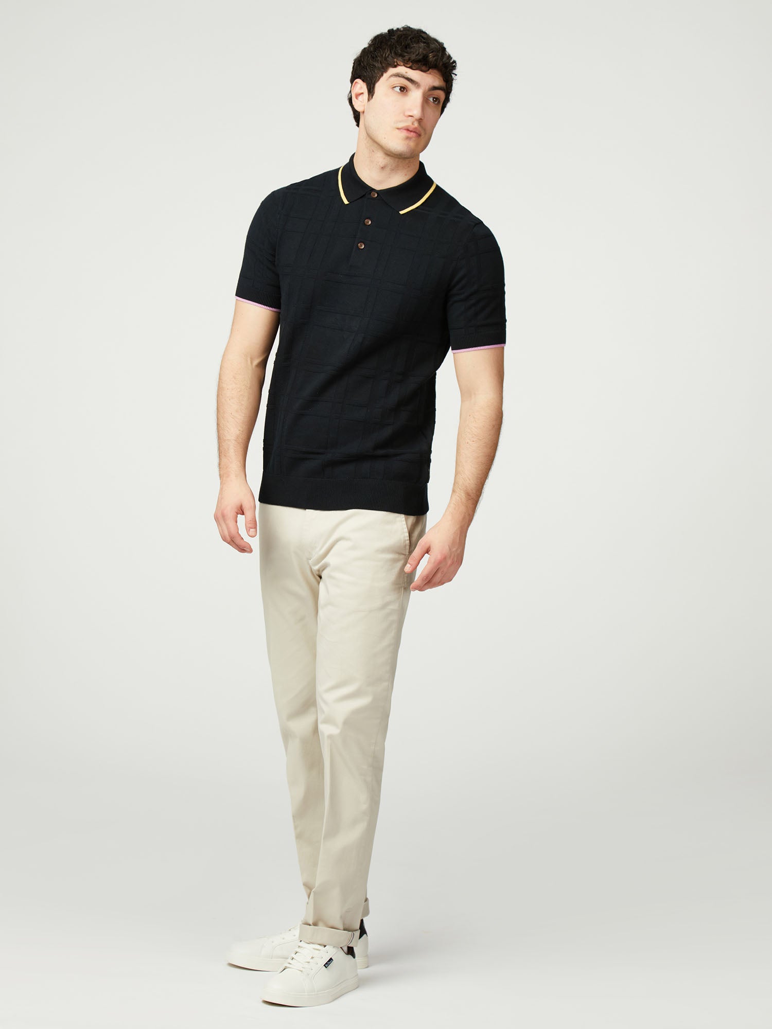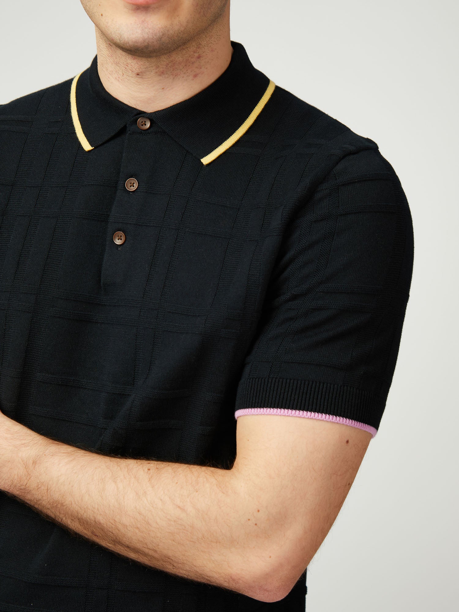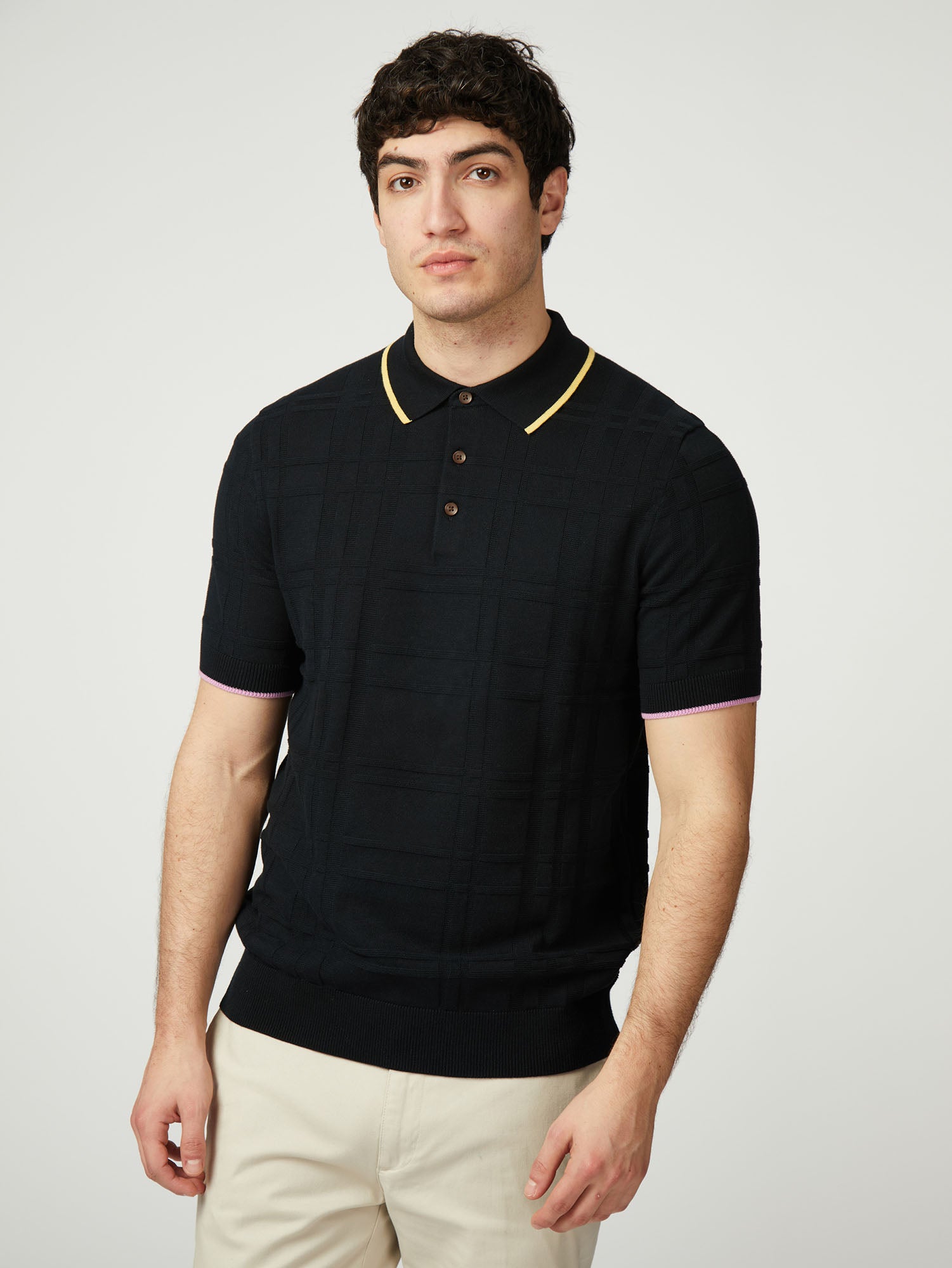 This knitted tartan textured polo features a ‘ben Sherman’ branded woven label at the side seam and a three button placket. A regular fit, made from 100% organic cotton