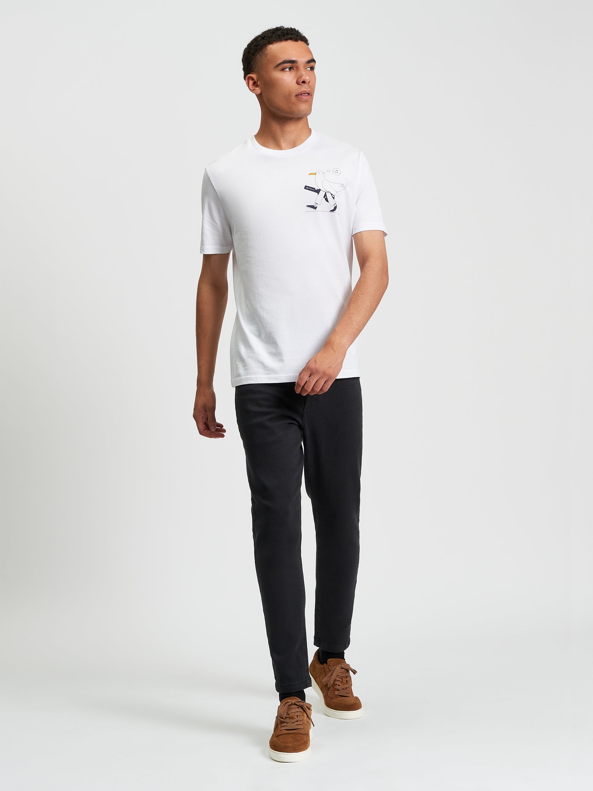 Crafted from 100% organic cotton, The Busker tee draws inspiration from the world of music, featuring a unique seagull and guitar graphic on the chest. Soft, breathable, and full of character, it’s finished with a Ben Sherman branded woven label at the side seam for an authentic touch. A subtle statement piece with creative edge.