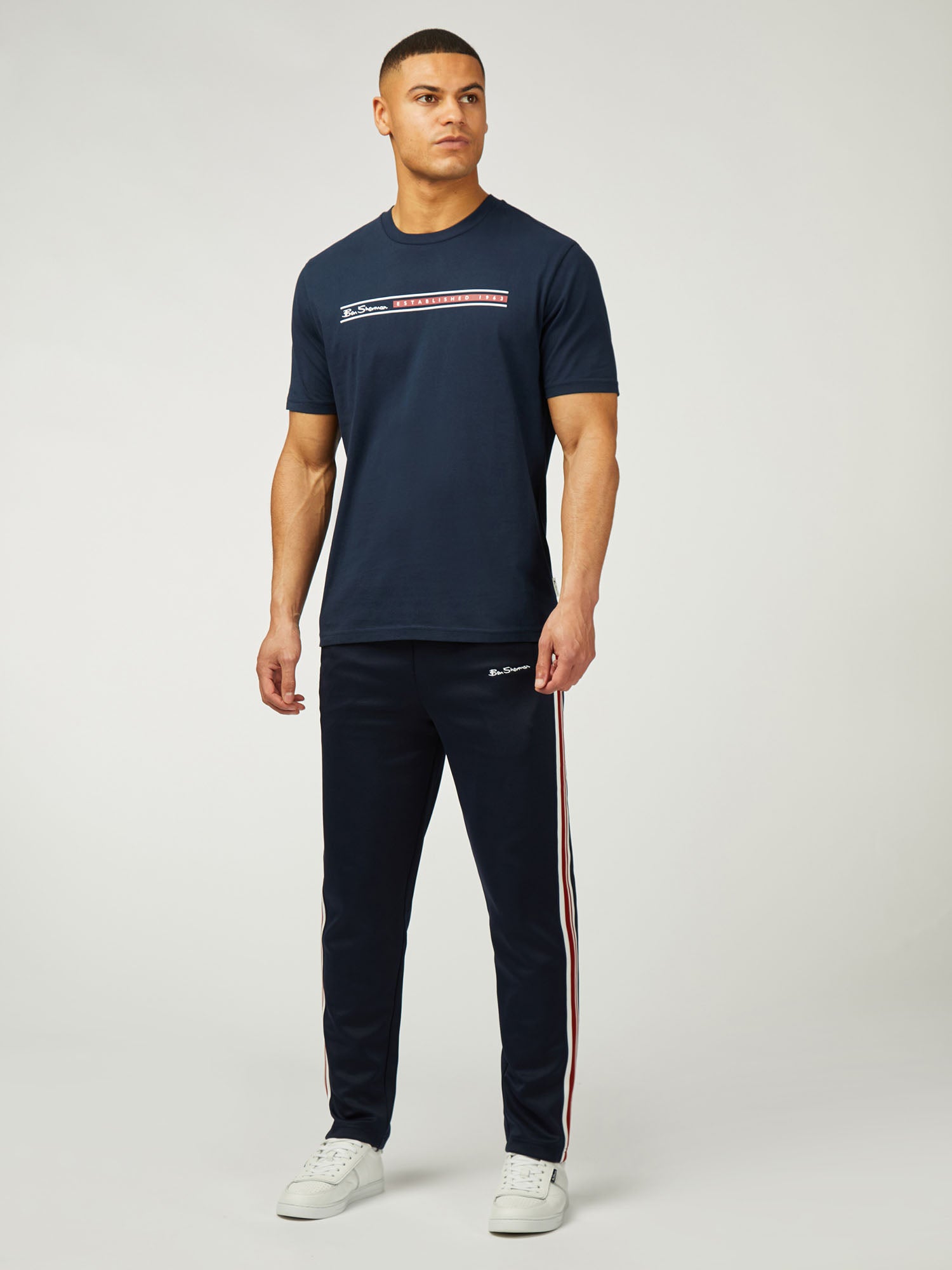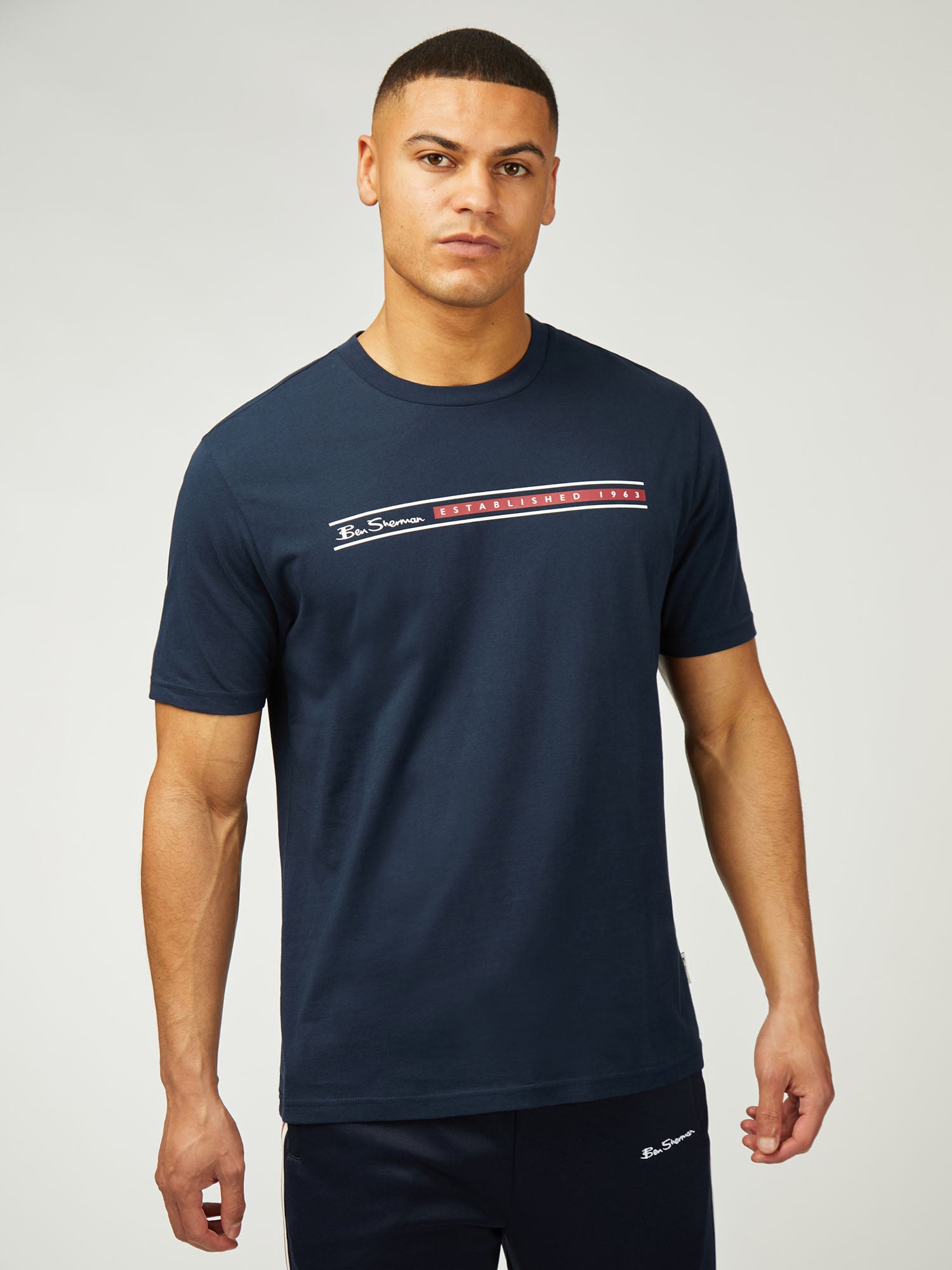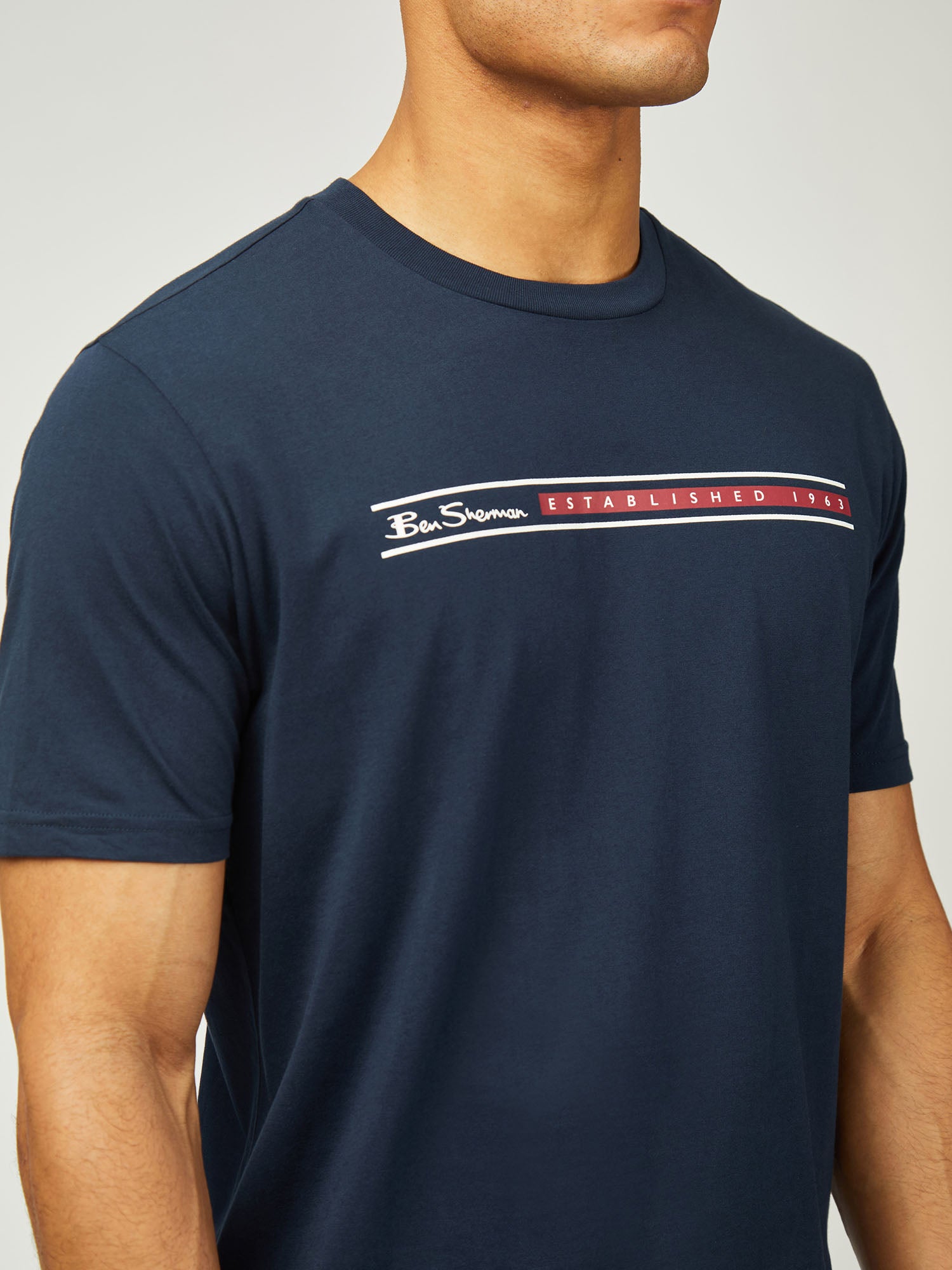 100% organic cotton T-Shirt in a regular fit. This style features a contrast seasonal chest stripe with branded 'Ben Sherman' text.