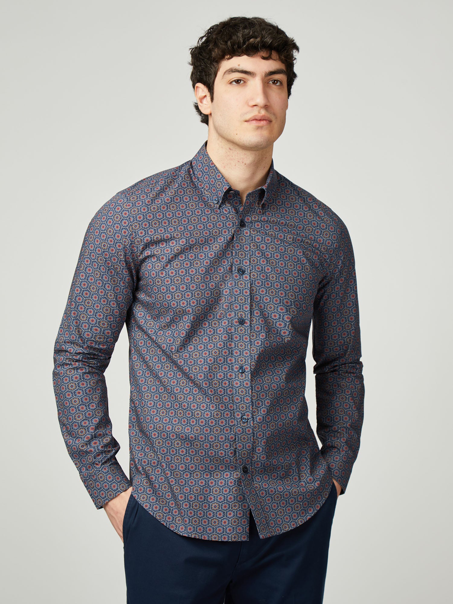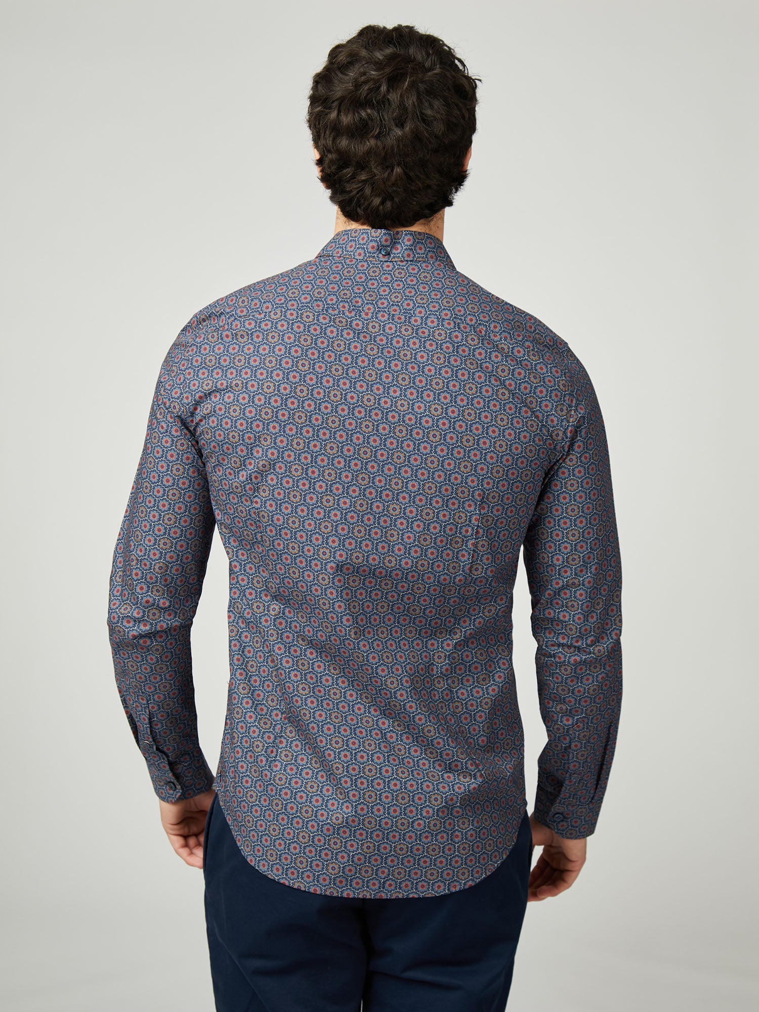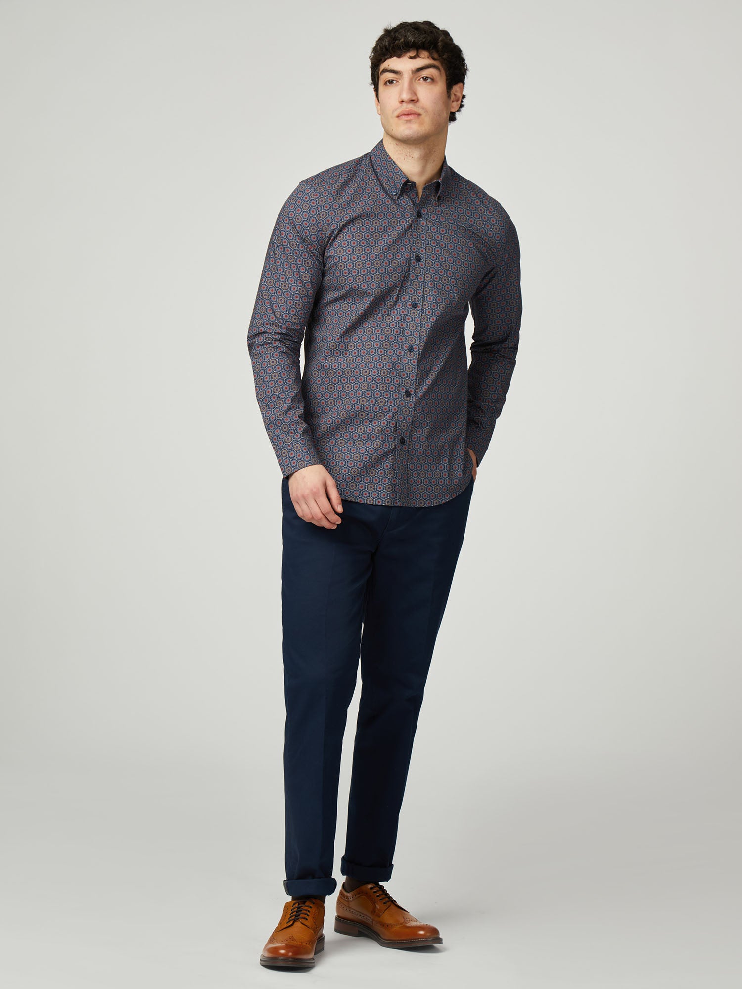A slim fit shirt designed with a foulard print. Featuring a curved hem, two finger button down collar and a ‘Ben Sherman’ branded woven label at the side seam. Made from 100% organic cotton