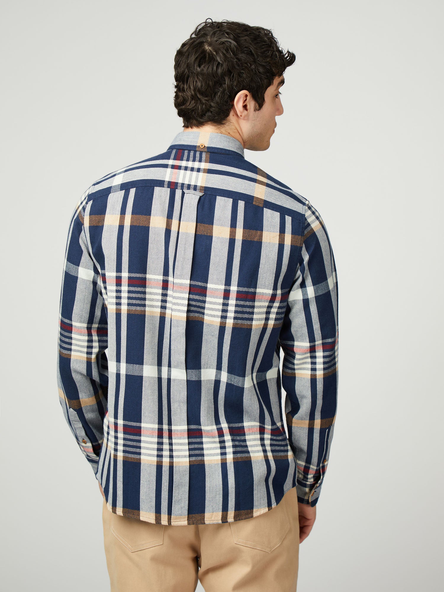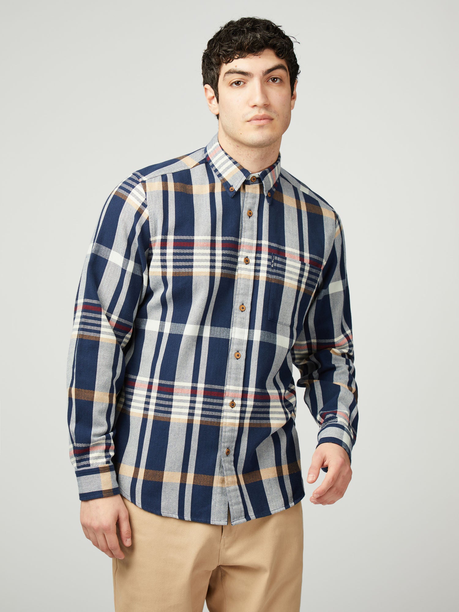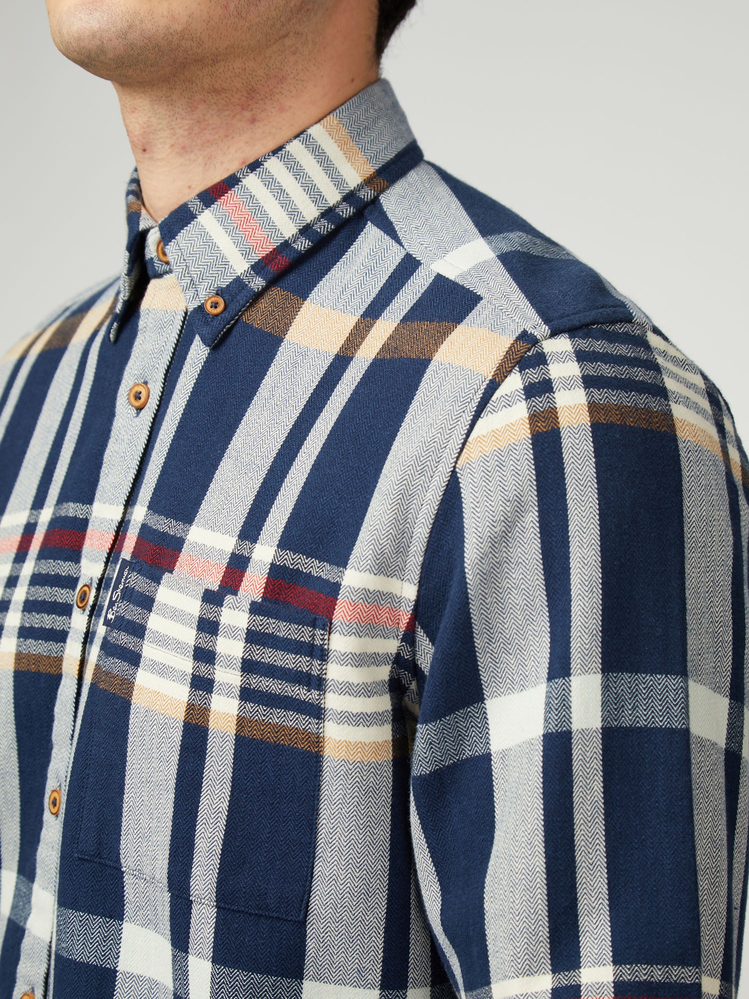 Made from 100% cotton, this long sleeve herringbone check shirt includes a two finger button down collar and a ‘Ben Sherman’ branded woven label at on the chest pocket. A classic fit featuring a curved hem.