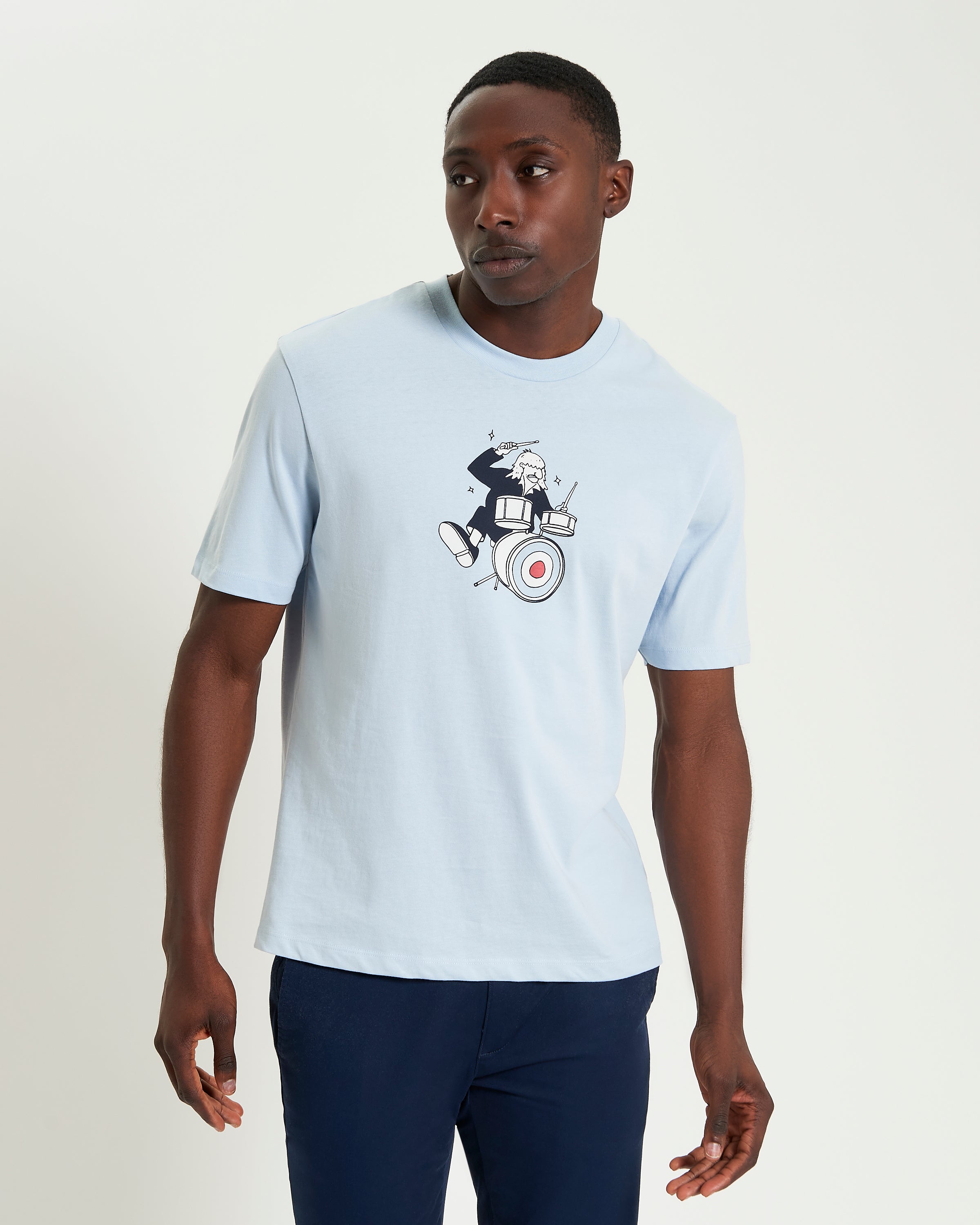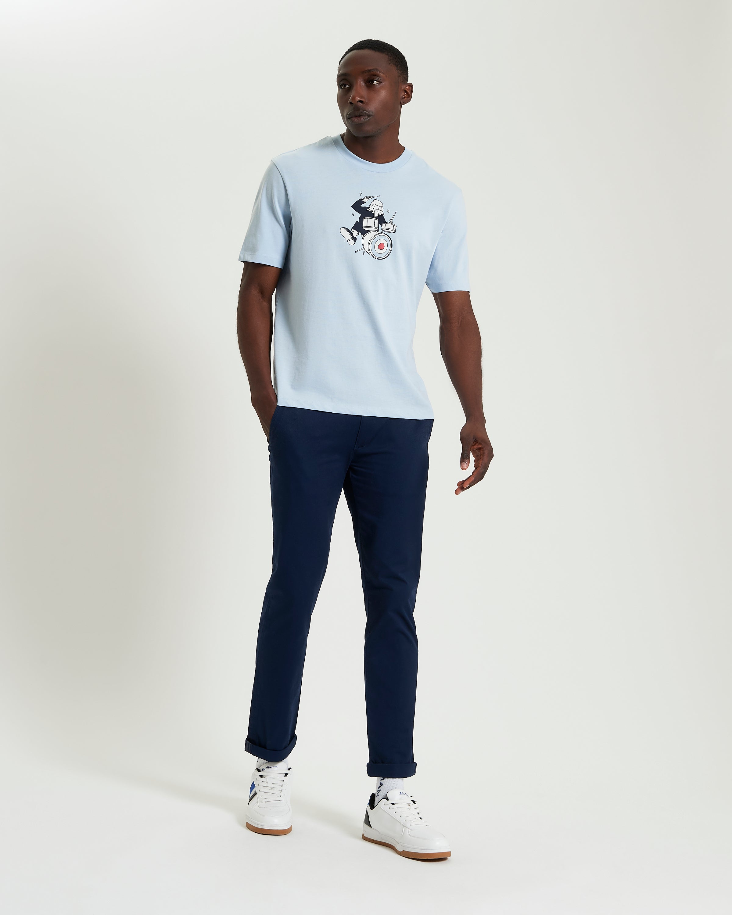 Channel classic cool with the Drummer Target tee by Ben Sherman. This relaxed-fit t-shirt is crafted in 100% GOTS-certified organic cotton, offering soft comfort and sustainable appeal. The standout drummer target print gives a modern twist to heritage band-inspired motifs—bold, graphic, and unmistakably stylish.
