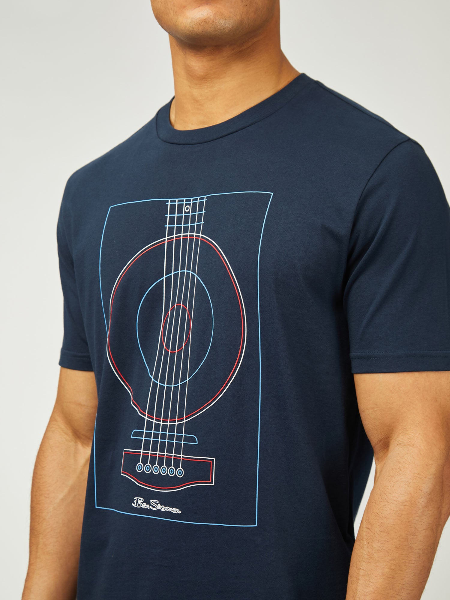 100% organic cotton jersey t-shirt in a regular fit. With a nod to the music scene, this t-shirt features a guitar inspired high build chest print. This style is complete with a 'Ben Sherman' flag label.