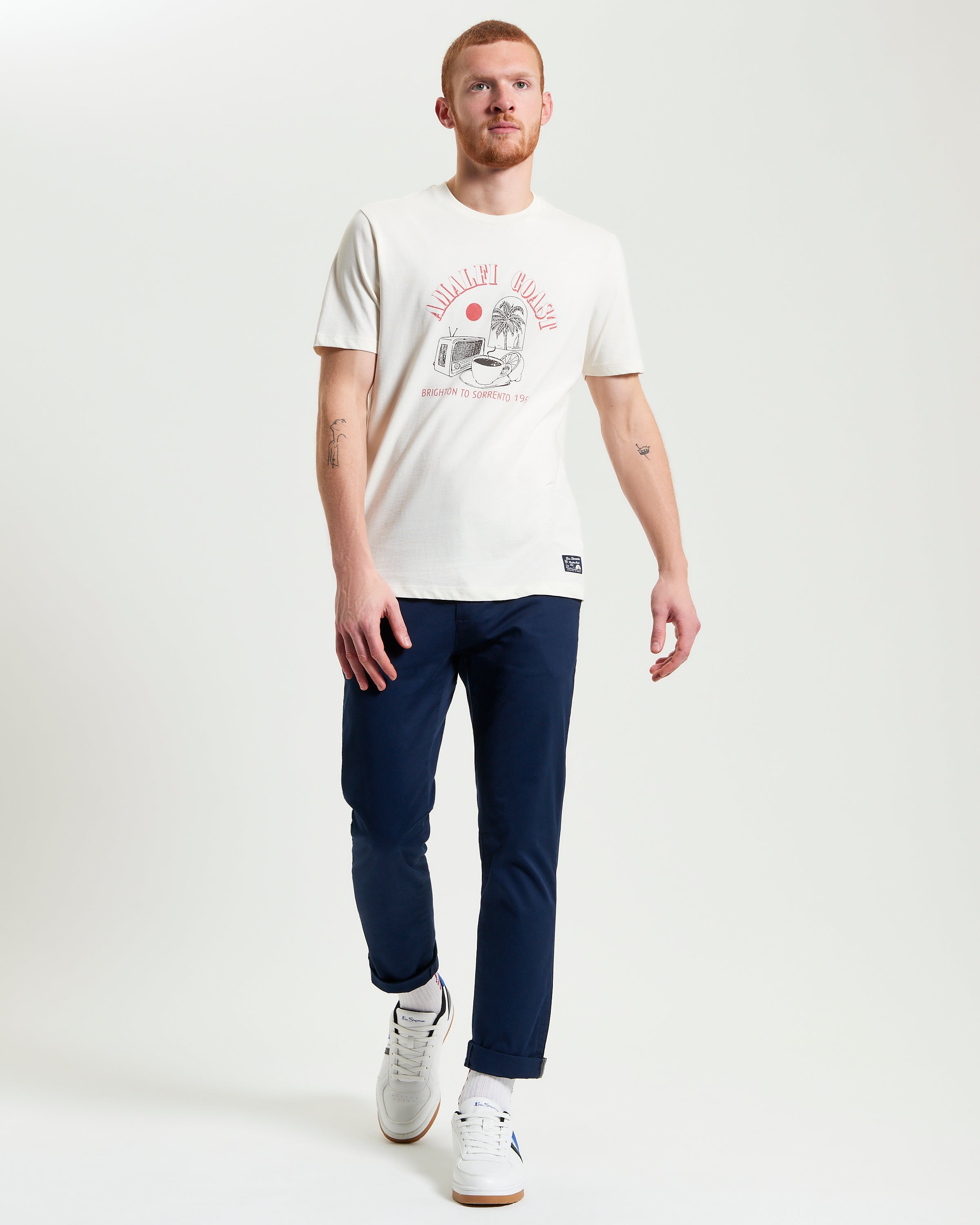Wake up your wardrobe with the Morning Brew Tee — a fresh spin on beach-club style. Made from 100% GOTS-certified organic cotton in a regular fit, this tee features an Amalfi-inspired chest print and a bold external badge for standout detail. Part of the “Brighton Beach Club” collection, it’s soft, breathable, and perfect for sunlit days when you want relaxed attitude with island flair.