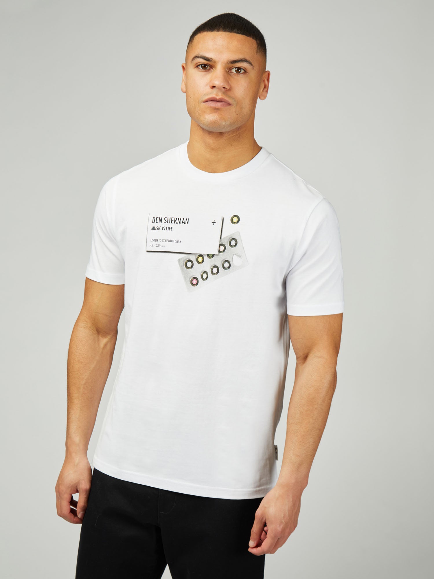 100% organic cotton t-shirt in a regular fit. Features include an abstract record pigment print and a branded 'Ben Sherman' flag label.