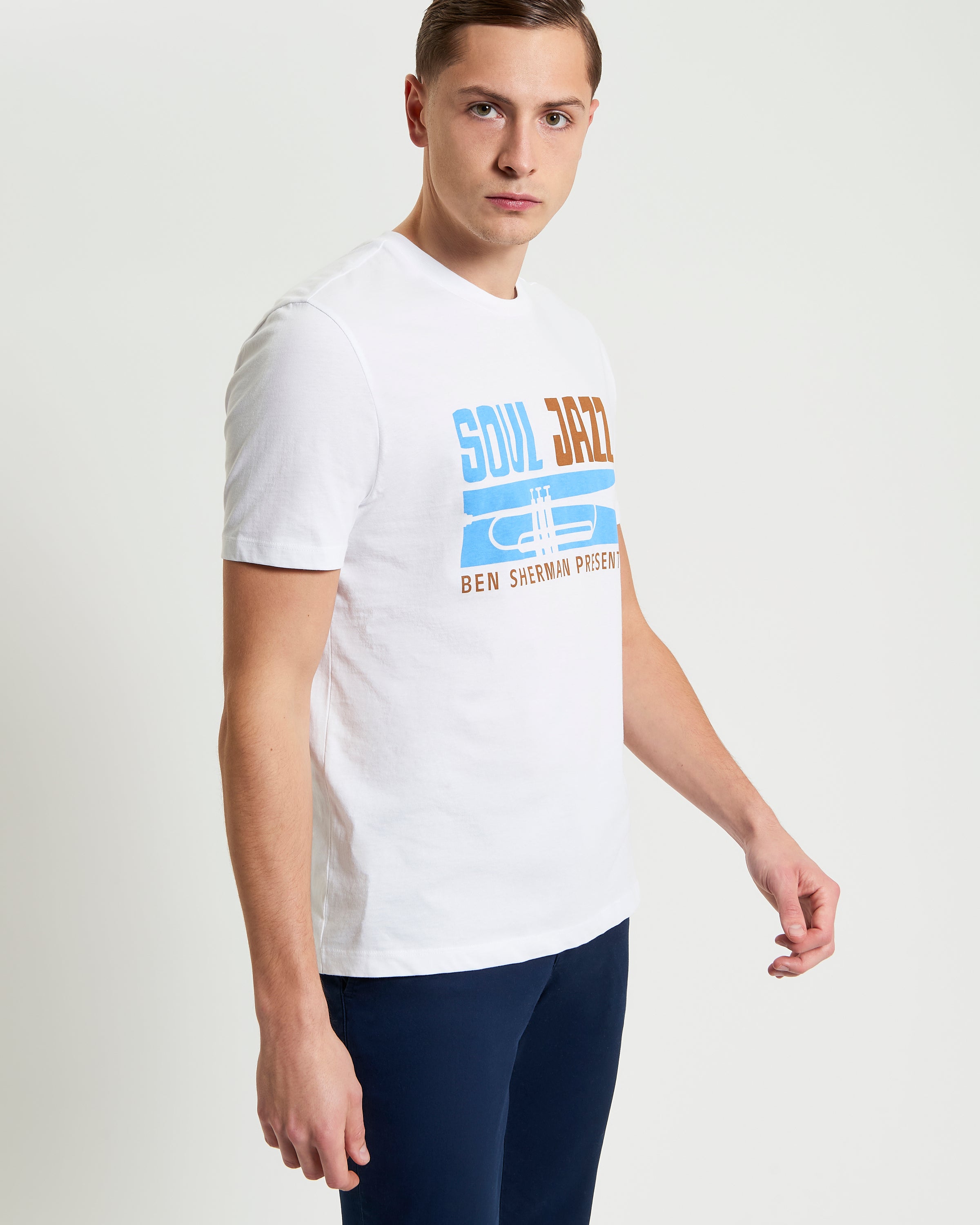 Unleash the rhythm of style with the Soul Jazz tee by Ben Sherman. Made from 100% GOTS-certified organic cotton, this t-shirt brings together premium comfort and sustainable integrity in one sleek design. Its regular fit offers a flattering yet relaxed silhouette that works perfectly on its own or layered.