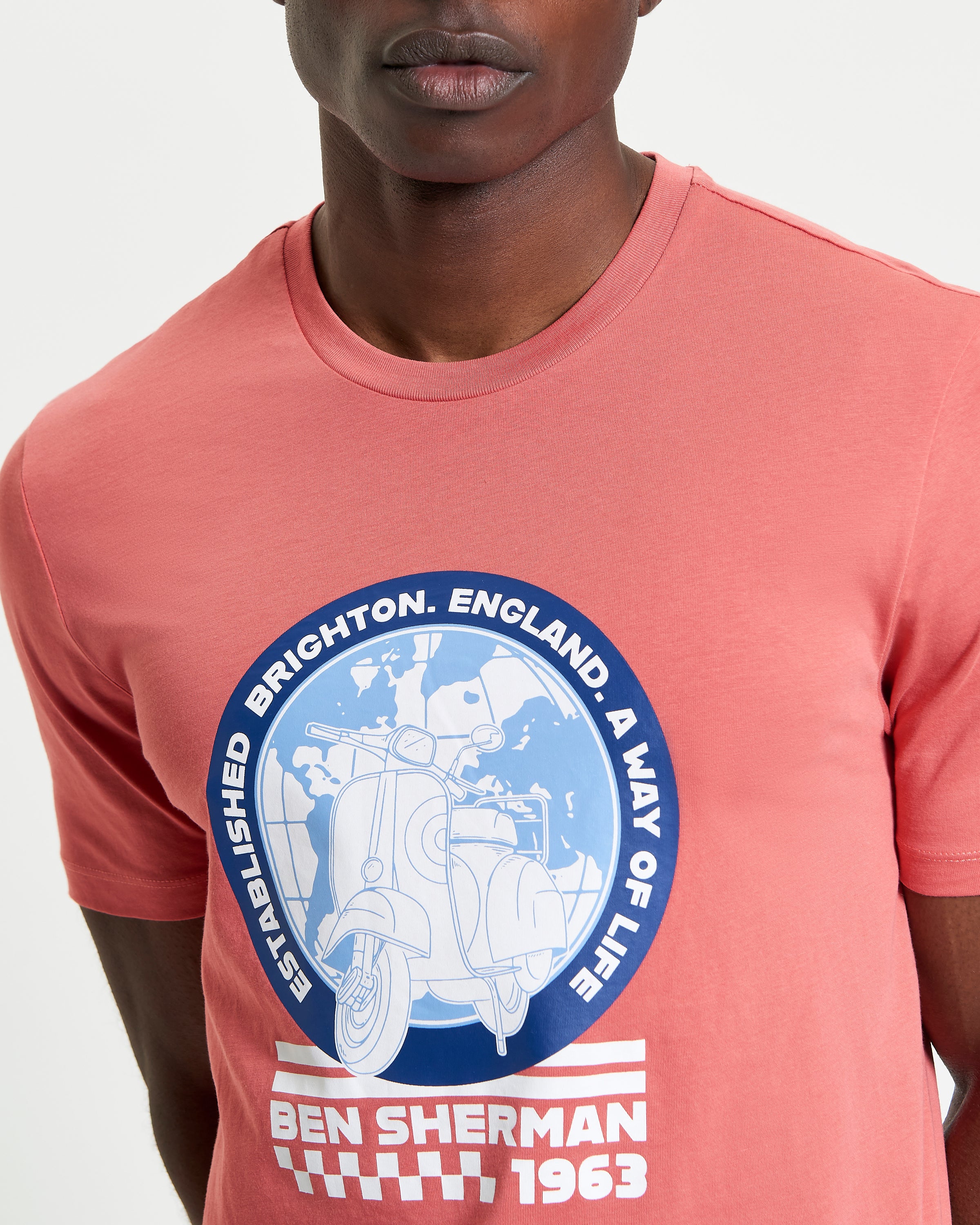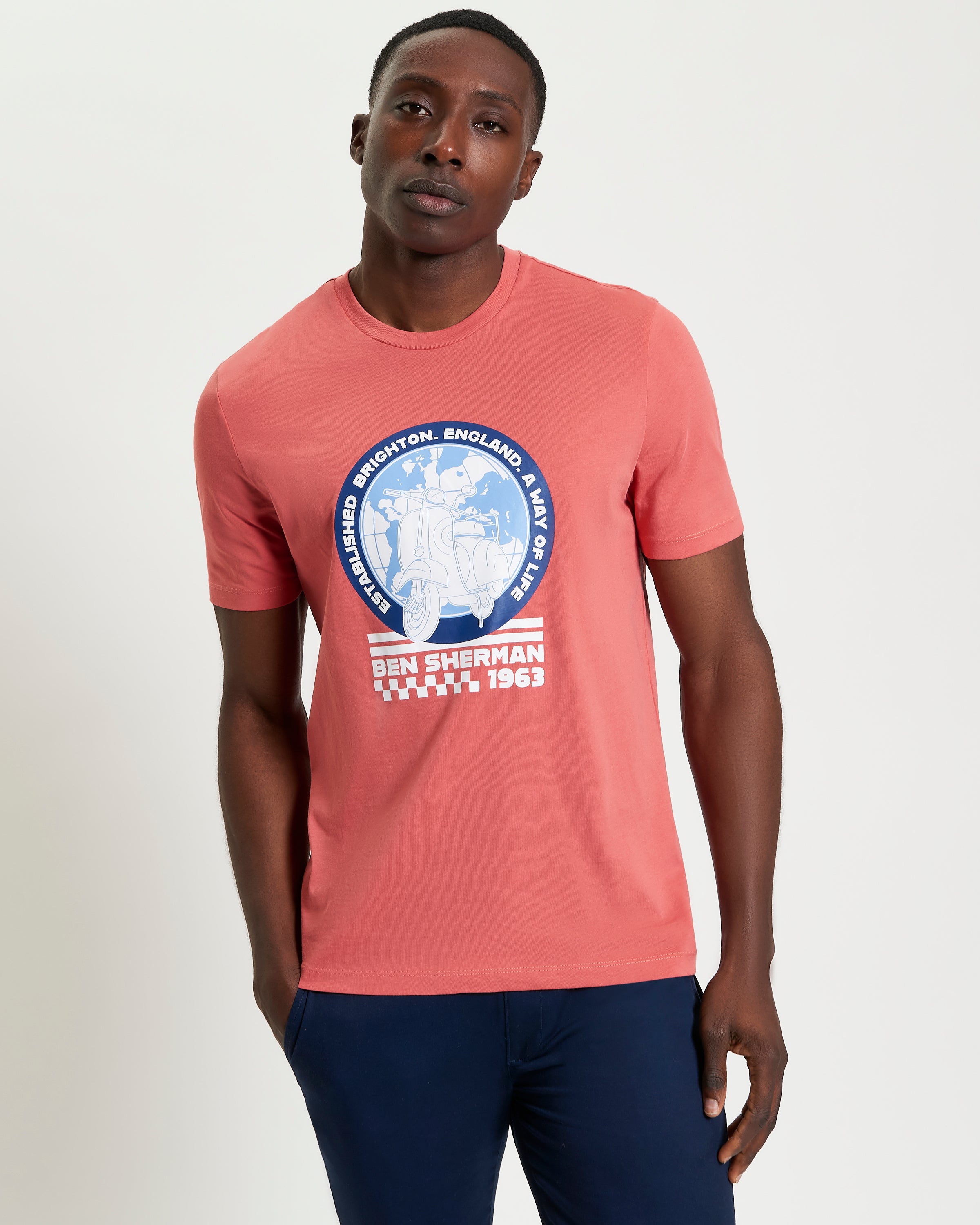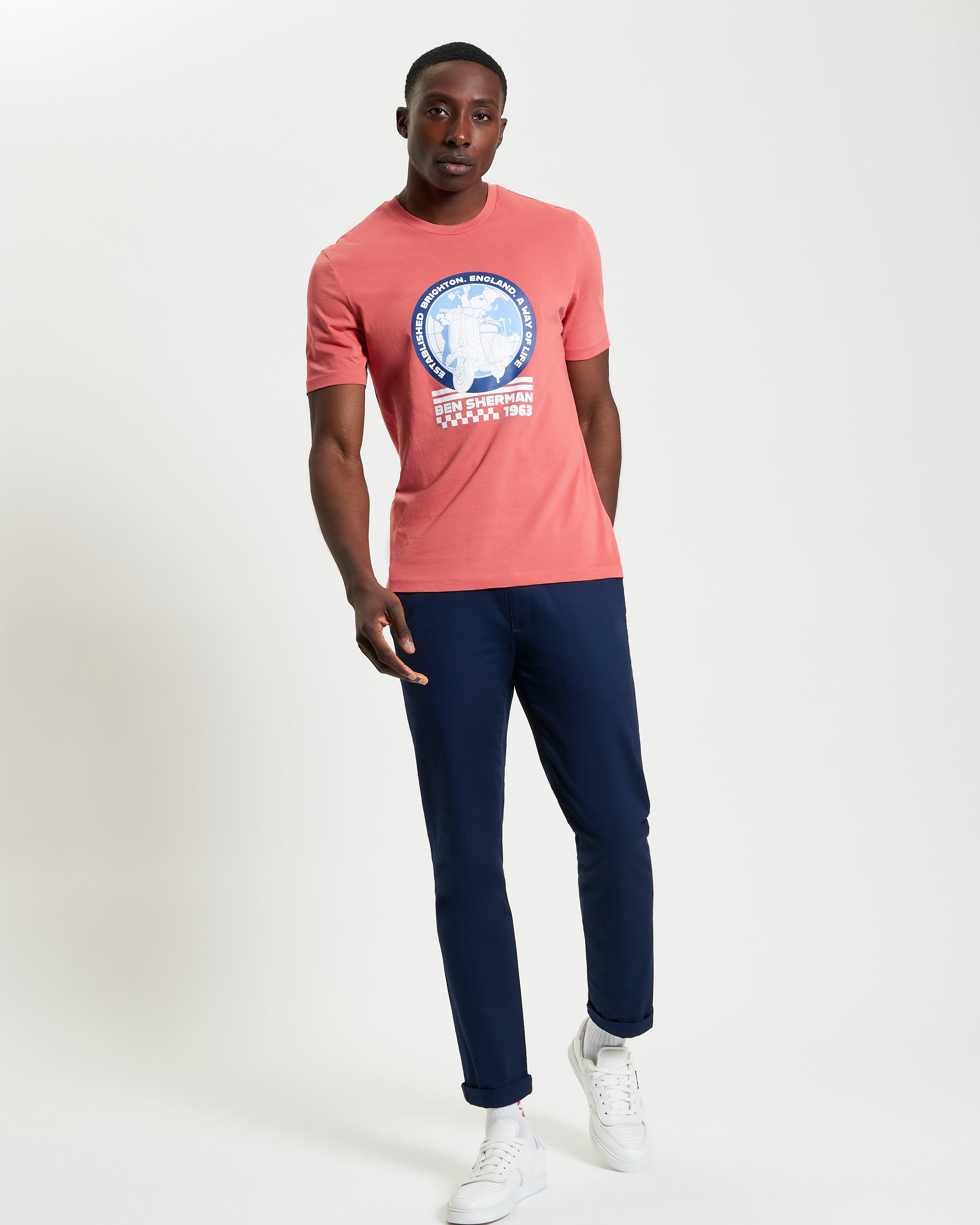 Ride the line between heritage and modern style with the World Scooter tee by Ben Sherman. Made from 100% GOTS-certified organic cotton, this regular-fit t-shirt delivers breathable comfort while honouring our commitment to sustainable sourcing. The standout feature is the abstract scooter print—a playful, graphic nod to classic motifs reimagined with contemporary flair.