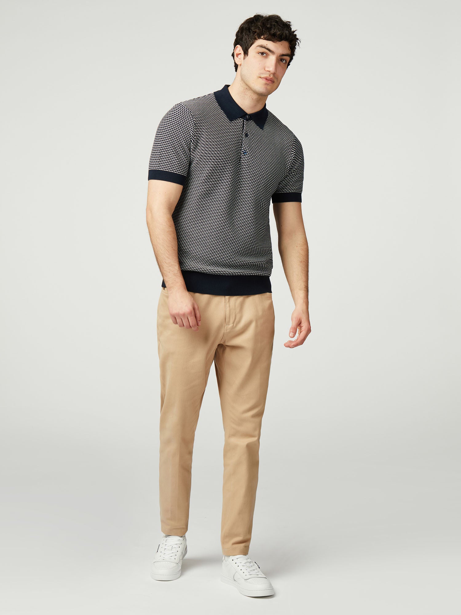Made from 100% organic cotton, this knitted bi coloured textured polo features a three button placket and a ‘Ben Sherman’ branded woven label at the side seam
