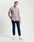A fresh take on a timeless classic, this Mini Gingham Check Shirt is crafted from 100% organic cotton for breathable comfort and sustainable style. Designed in a regular fit, it features short sleeves, a curved hem for versatile wear, and Ben Sherman’s signature two-finger button-down collar. Finished with the iconic woven chest pocket label, it’s the perfect balance of smart and casual.
