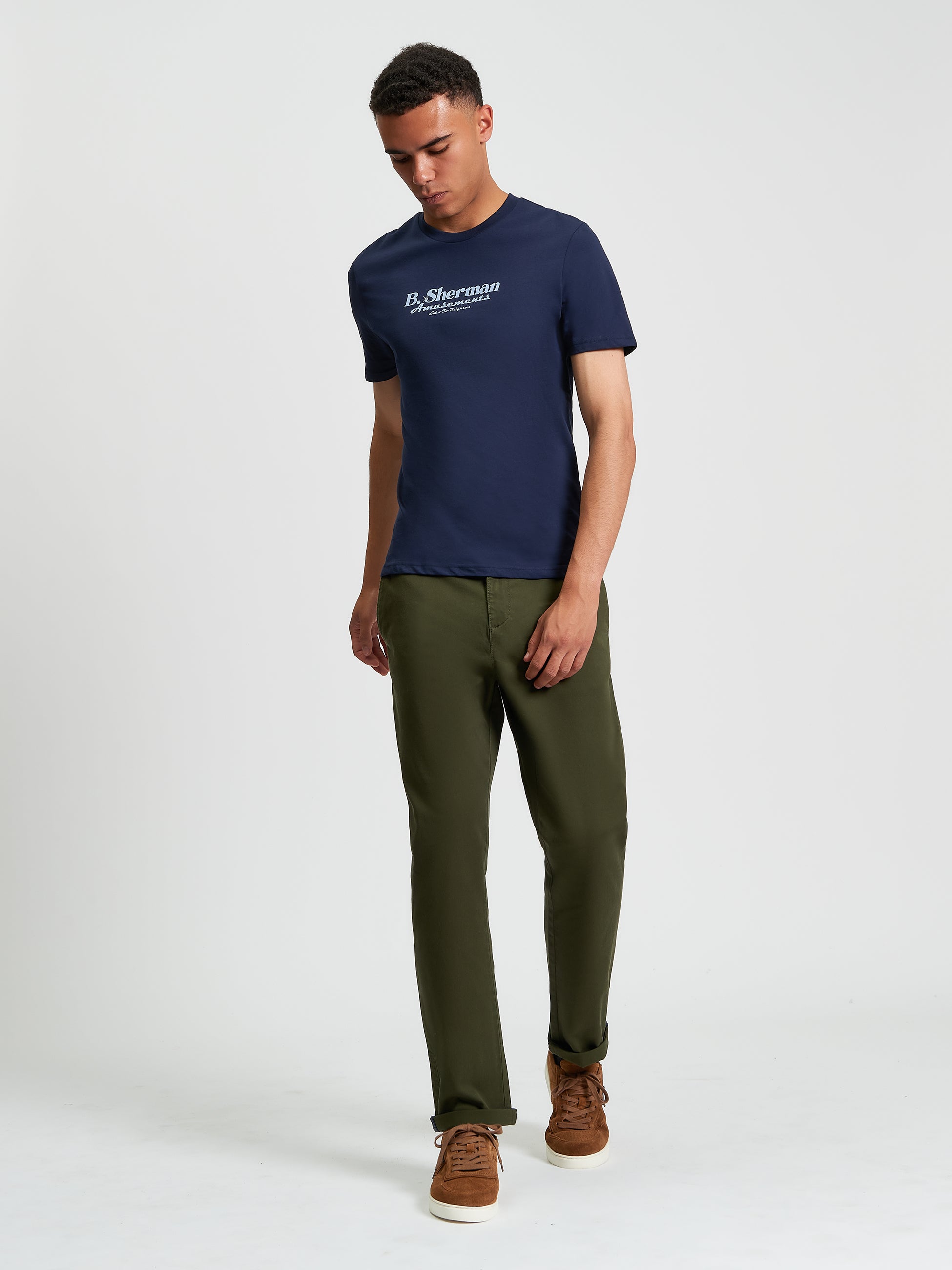 Made from 100% organic cotton, the Pinball Tour Tee brings bold retro energy with a vibrant pinball-inspired graphic across the back. A clean Ben Sherman text print at the centre chest adds balance and modern edge. Finished with a Ben Sherman branded woven label at the side seam, it’s a standout piece packed with personality.