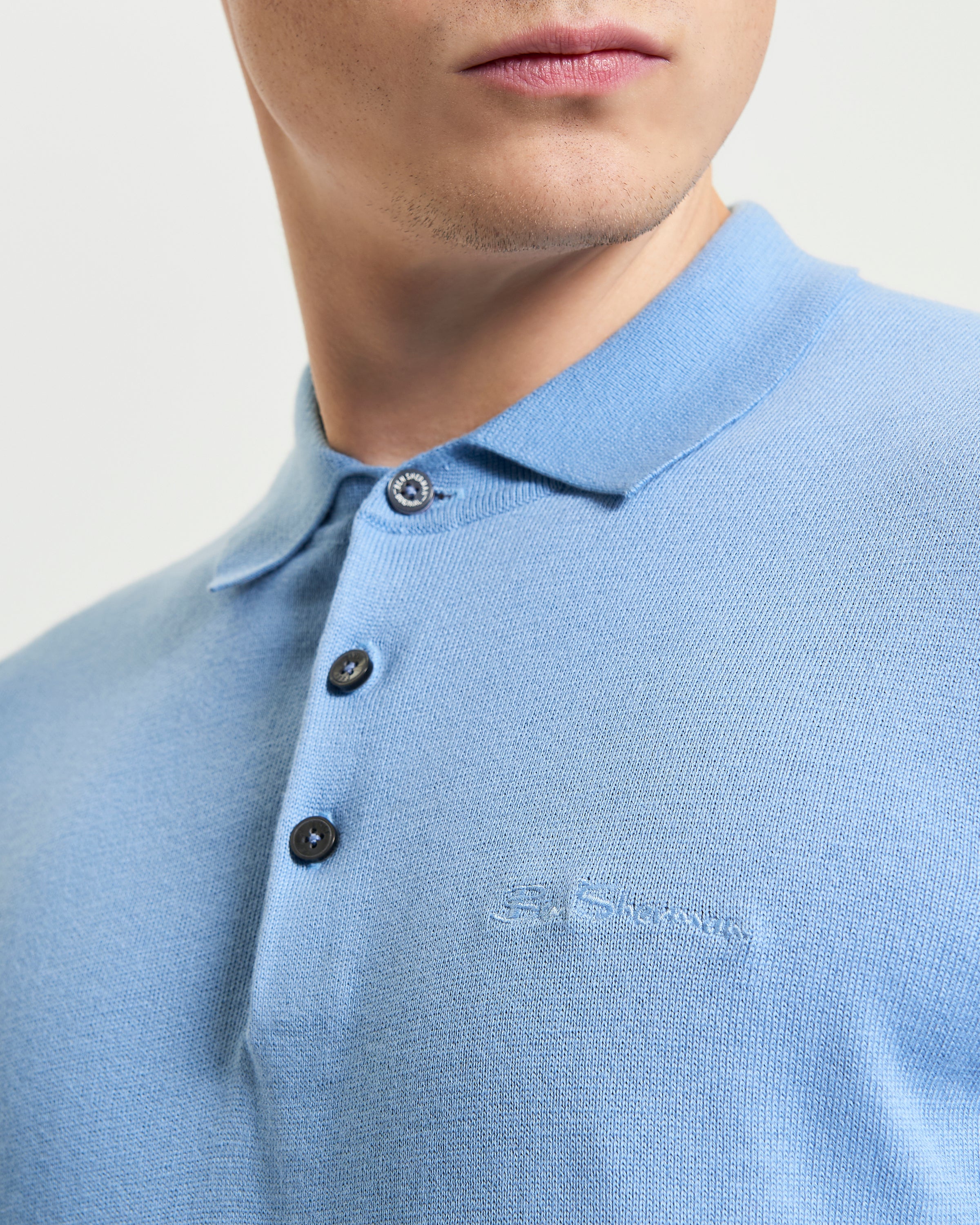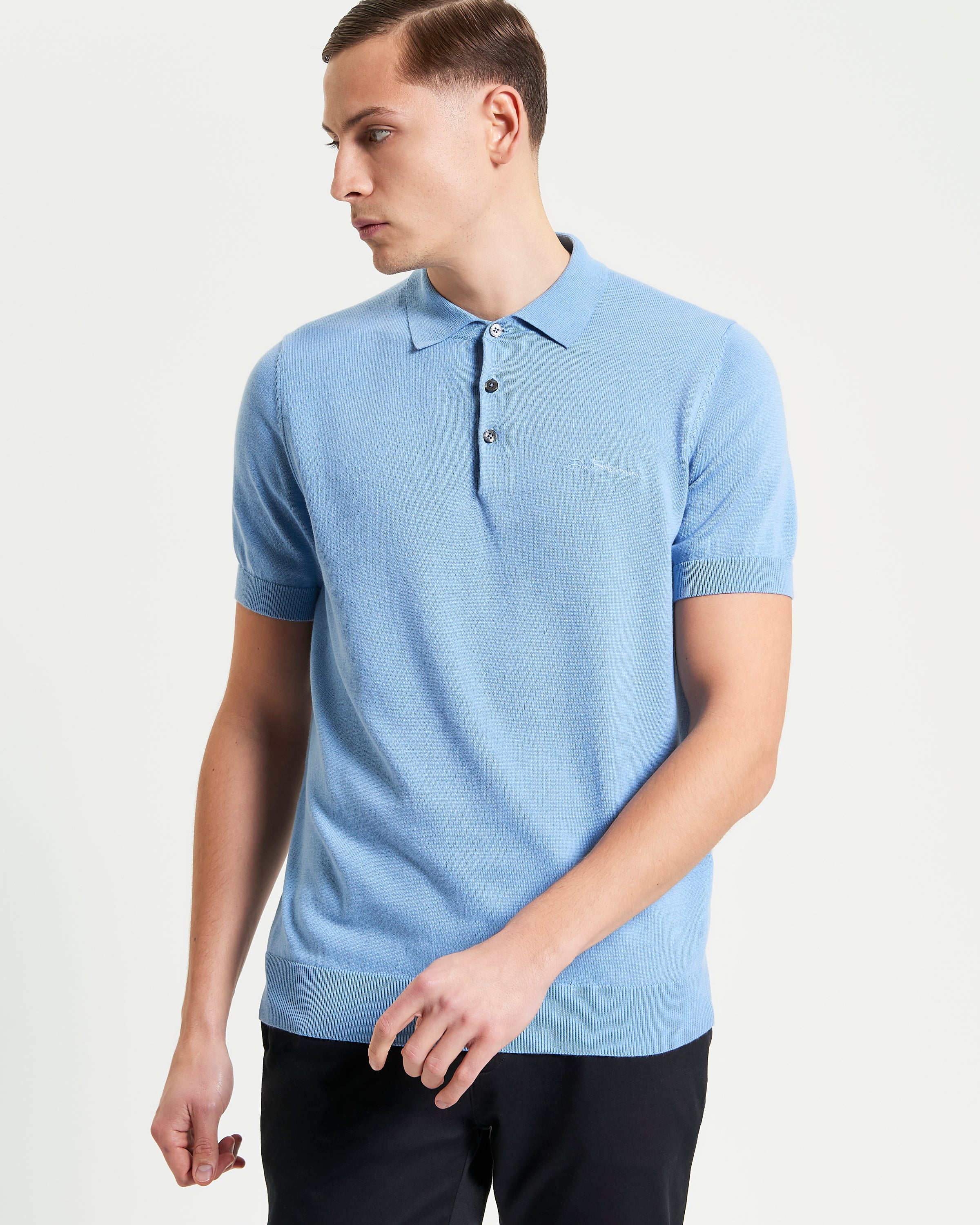 Refine your warm-weather rotation with the Signature Short Sleeve Polo. Made with premium knit construction, this polo balances smart tailoring and relaxed ease. It features a ribbed collar and cuffs, a clean two-button placket, and a sleek fit that flatters without clinging. The subtle branded “Ben Sherman” woven label adds a touch of signature detailing. Go from weekend brunch to casual office setting with comfort and style.