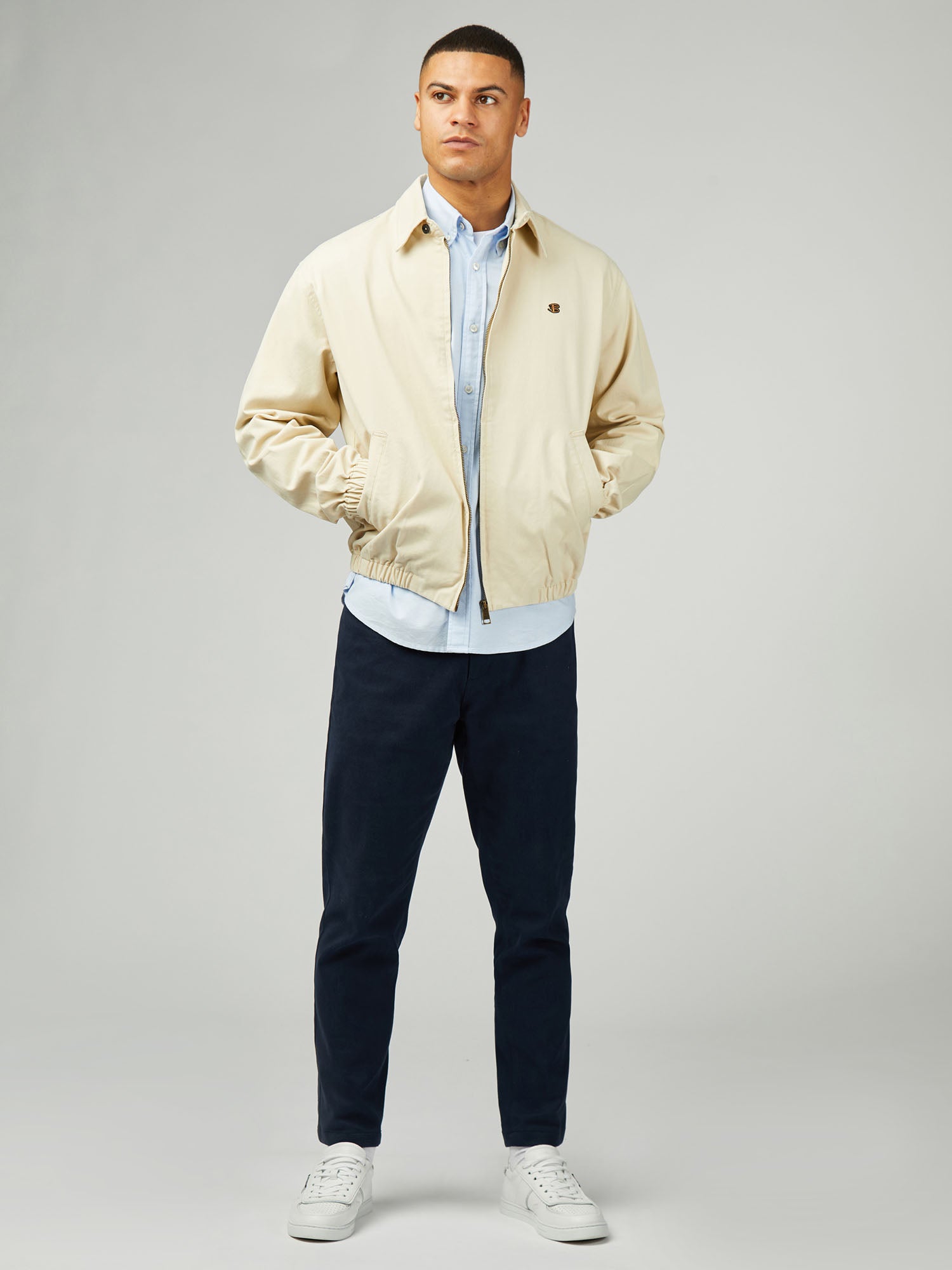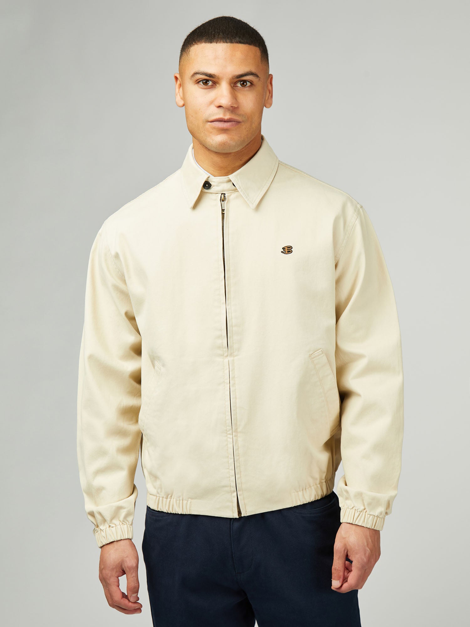 A zip through blouson jacket with an elasticated hem and cuff. Features include two external welt pockets and a twin needle back seam. As part of our "B by Ben Sherman" range, this jacket is branded with a B chest embroidery.