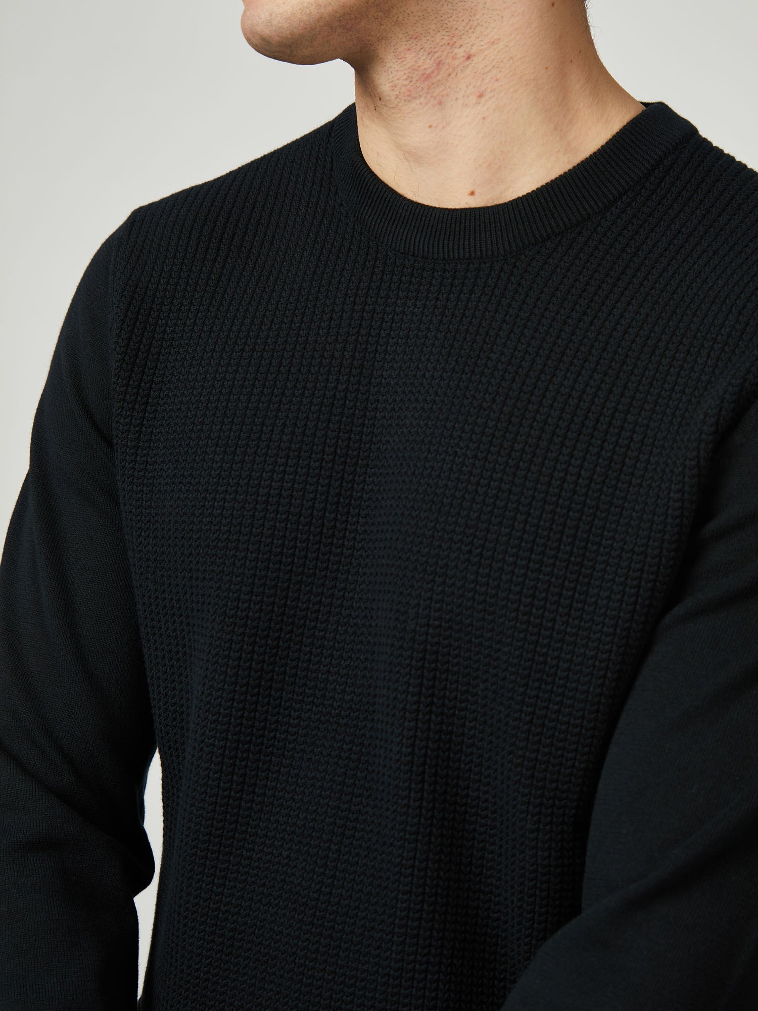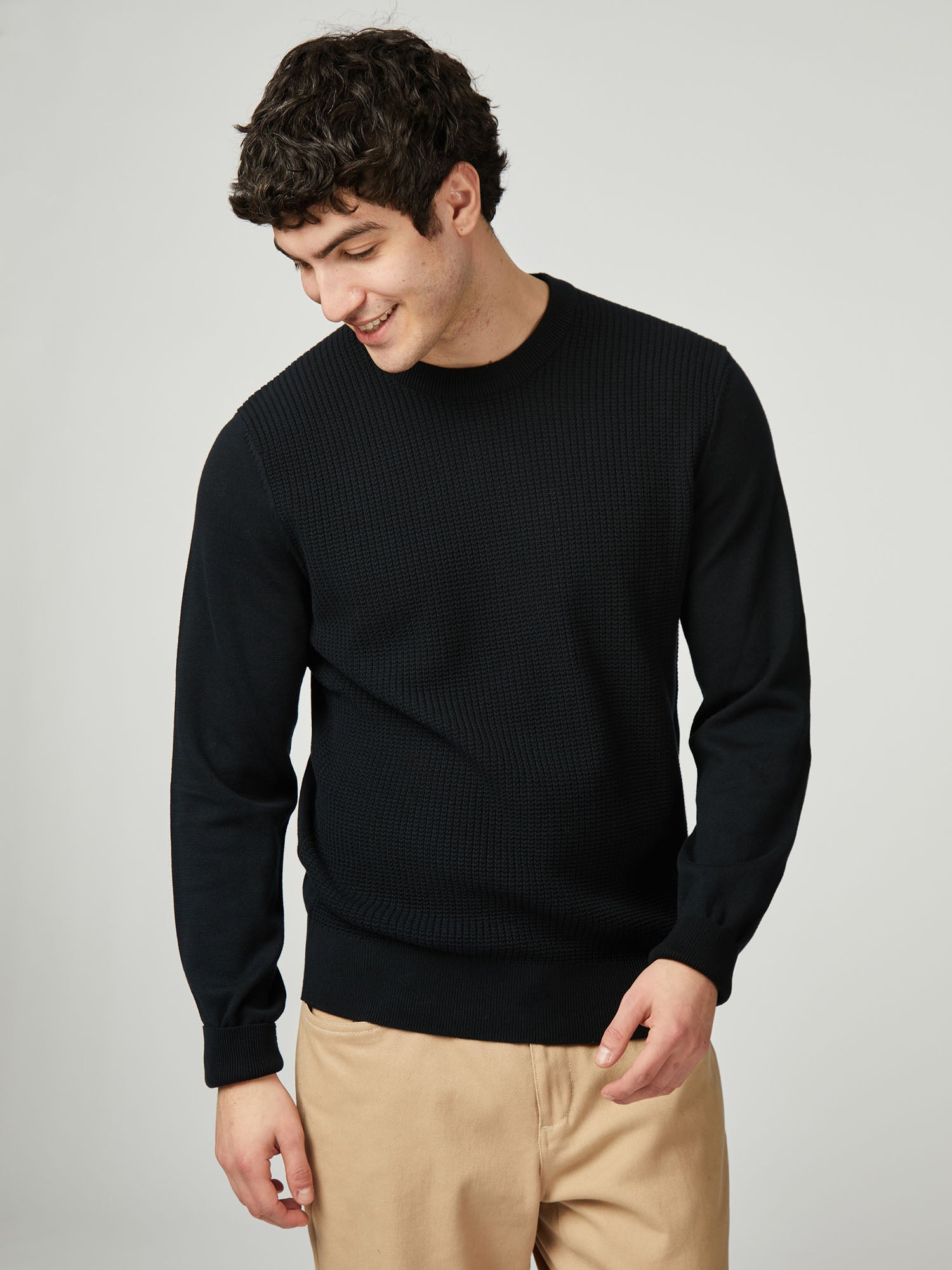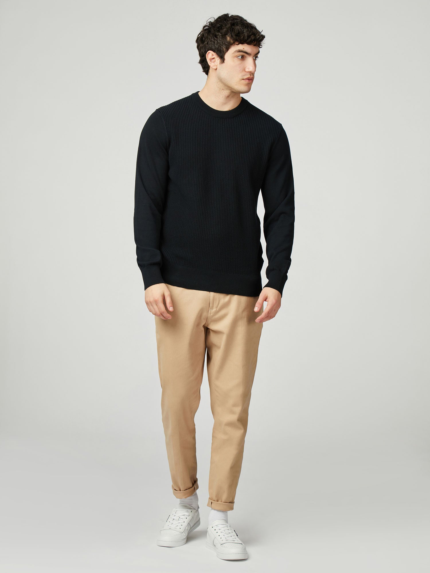 Made from 100% organic cotton, this knitted textured front crew features a ‘Ben Sherman’ branded woven label at the side seam.